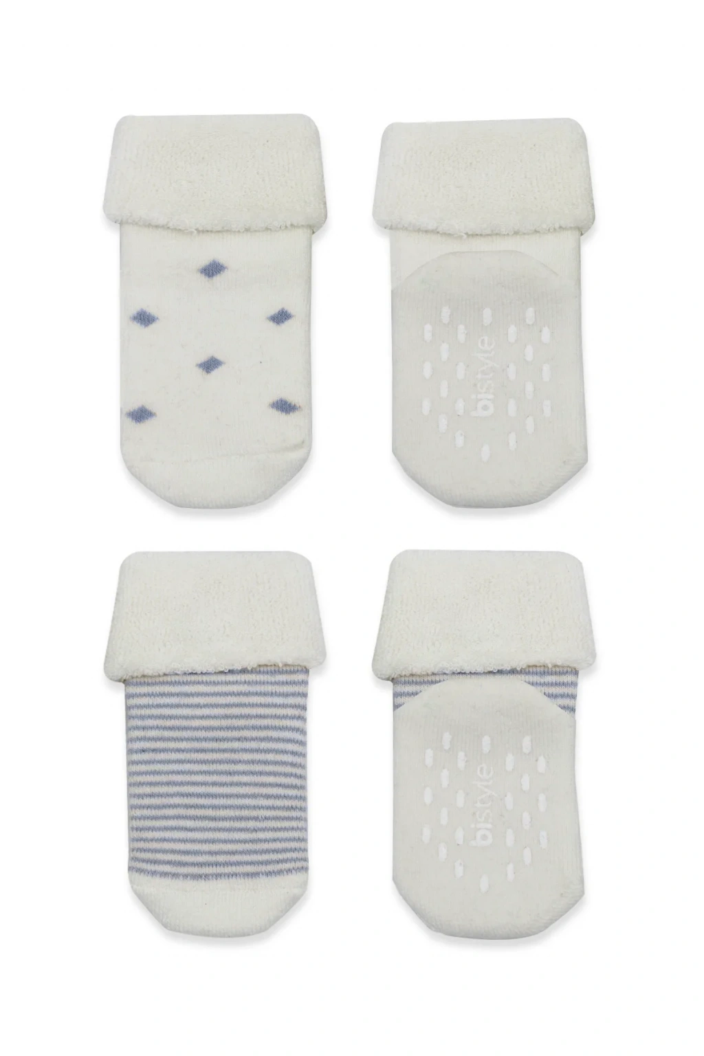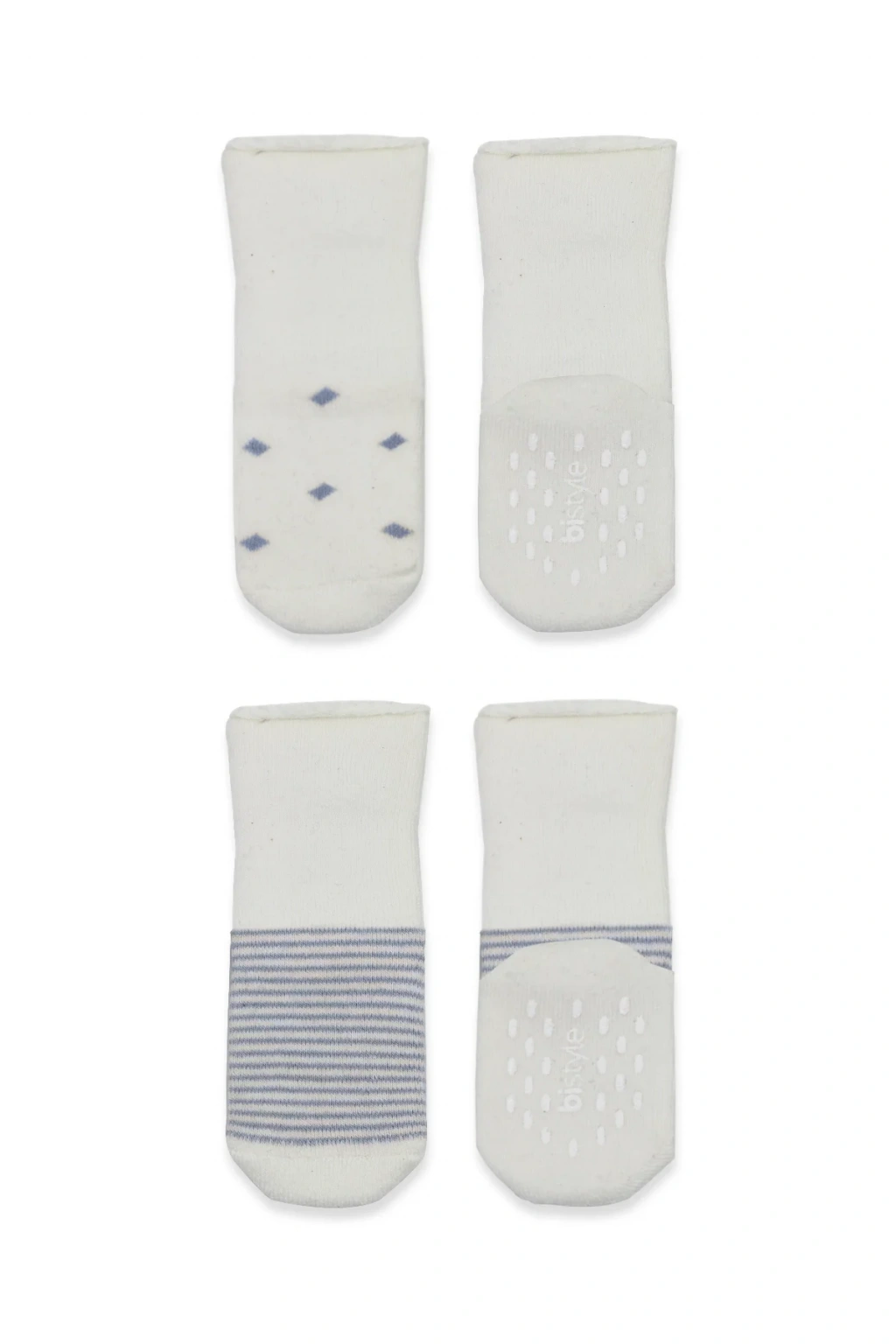 Bistyle 2'li Havlu Soket Kaymaz Çorap 10504 İndigo Ekru