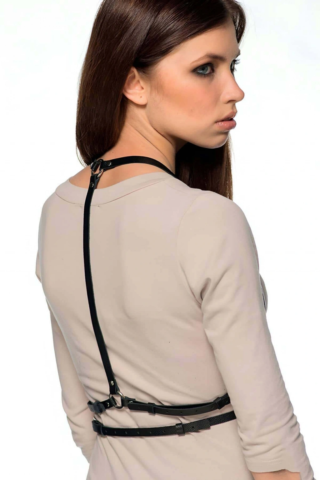Siyah Göğüs Harness Deri Çapraz Metal Halkalı Beden Aksesuarı - Brf263