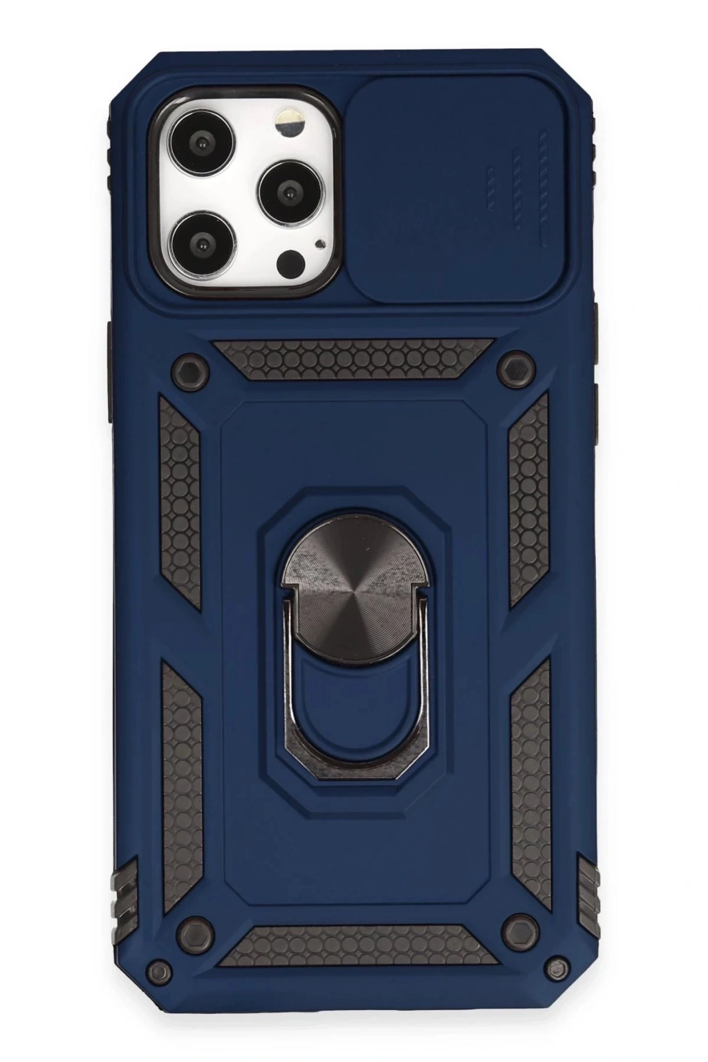 iPhone 12 Pro Max Kılıf Pars Lens Yüzüklü Silikon - Lacivert