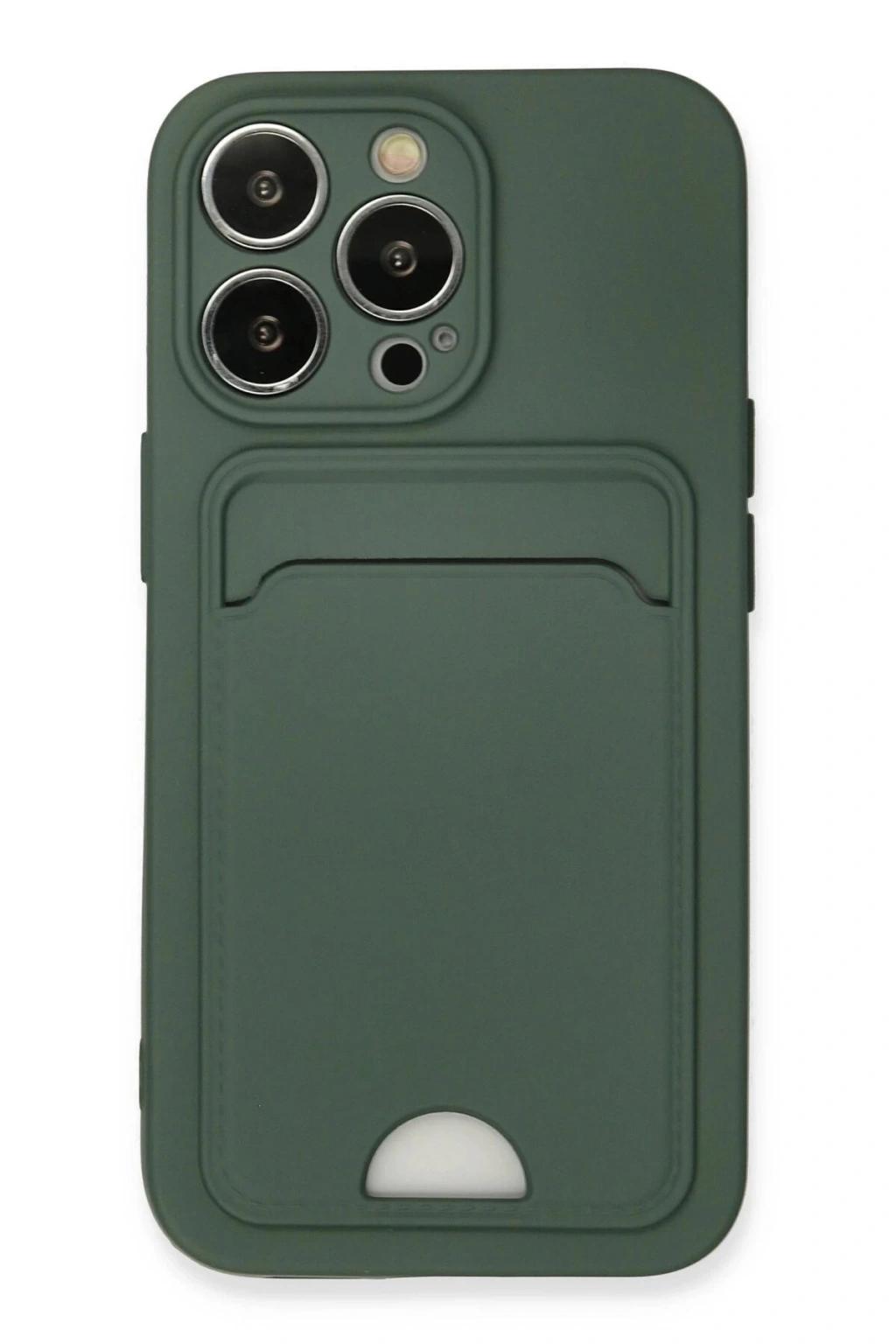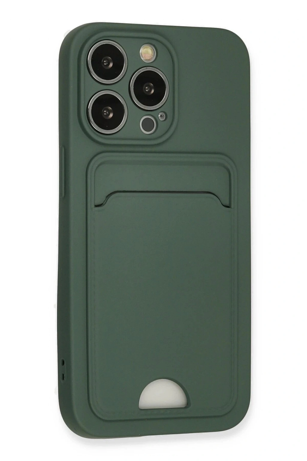 iPhone 13 Pro Kılıf Kelvin Kartvizitli Silikon - Koyu Yeşil