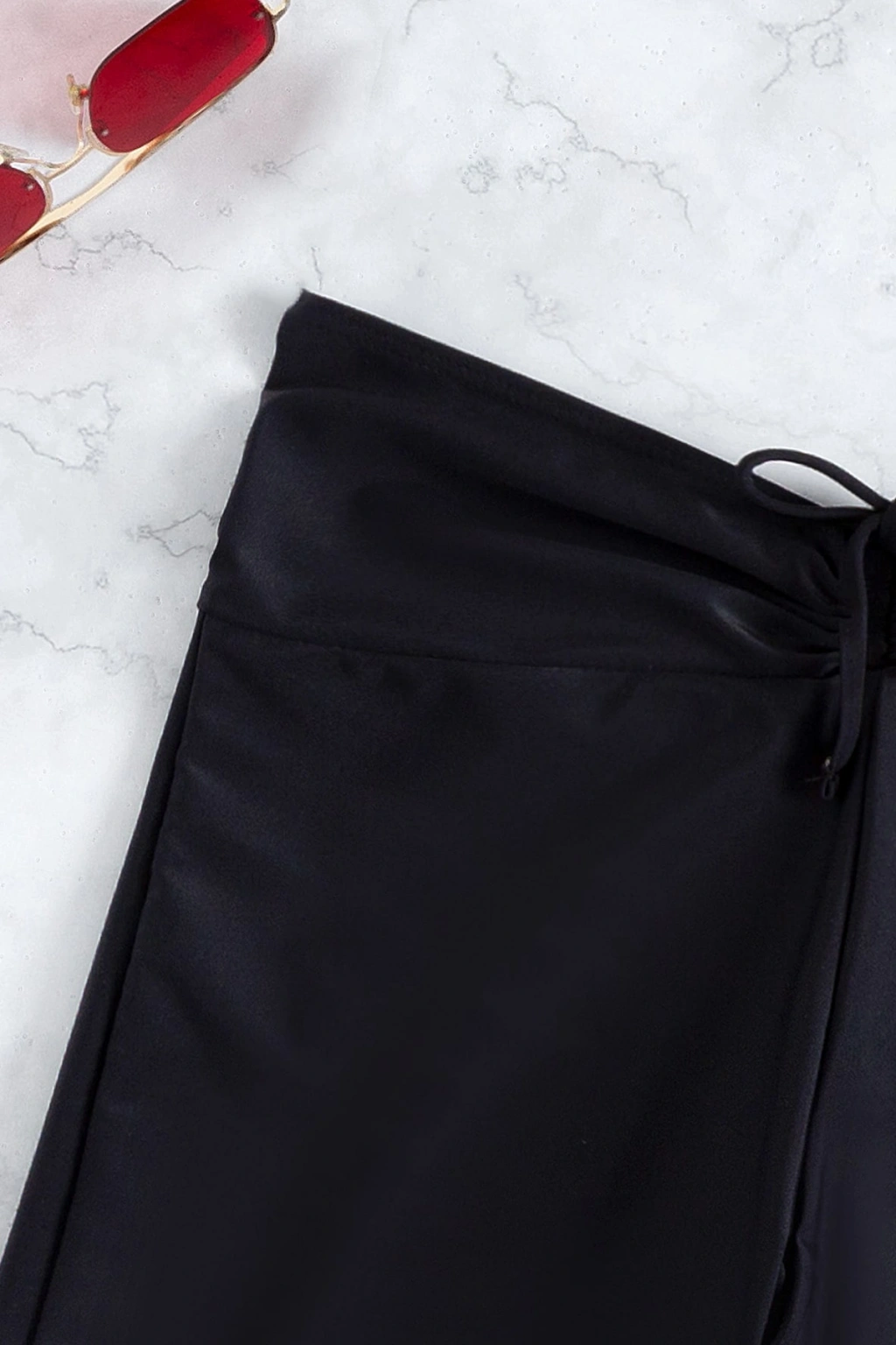 Kadın Siyah Önden Bağcıklı Deniz Şortu