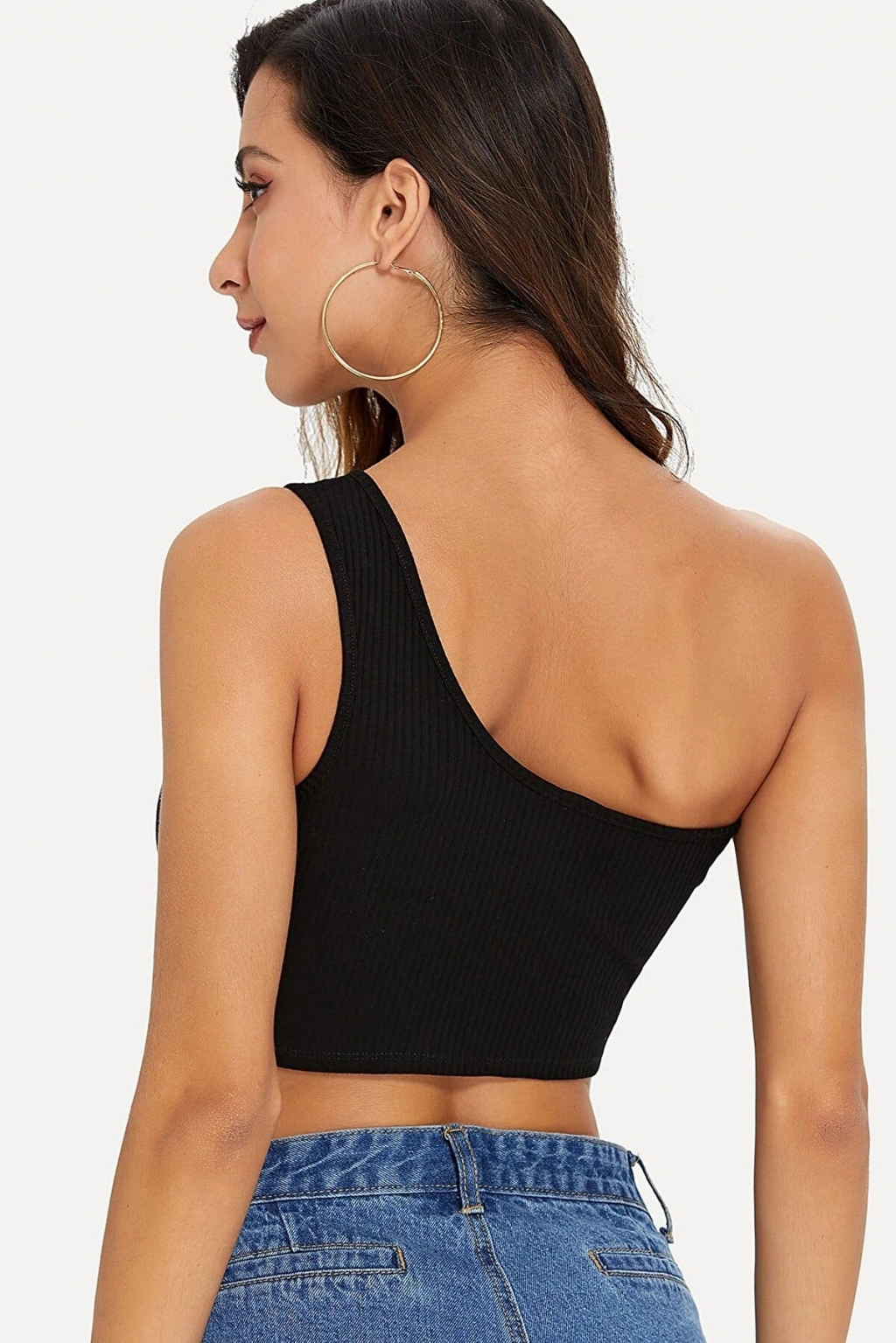 Kadın Siyah Tek Omuz Crop Büstiyer