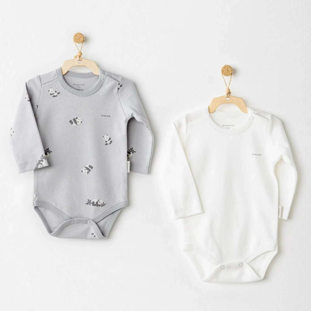 Bistyle Flying Elephant Yarım Kol 2'li Body 17116 Ekru Gri