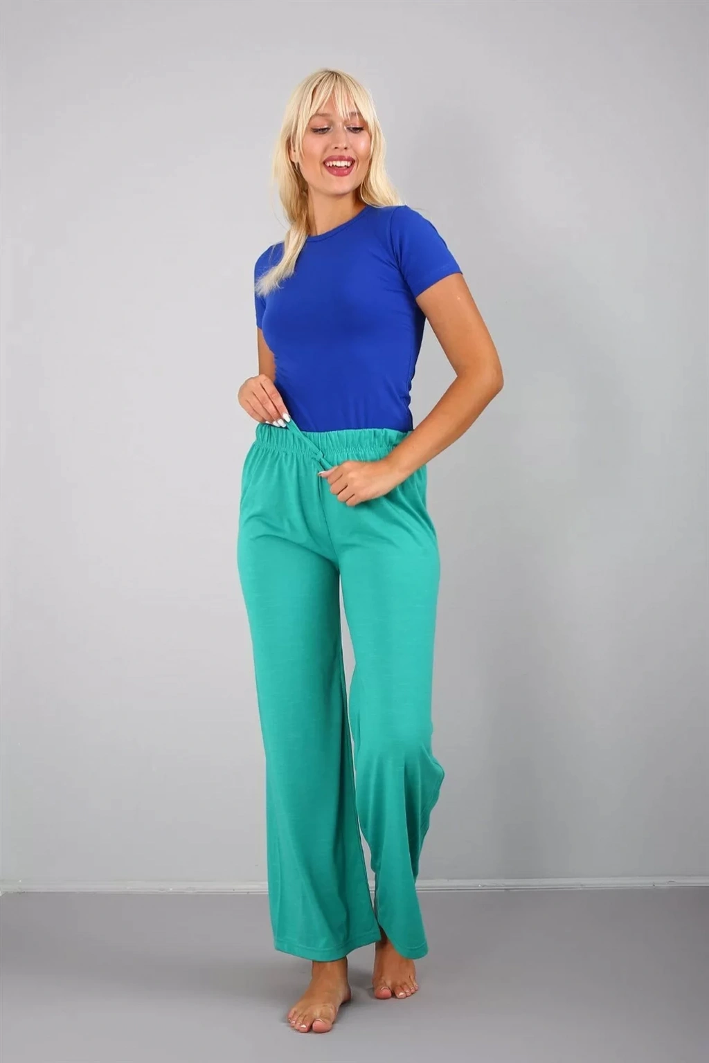 Çamaşır Kenti markasının tasarladığı Bayan Penye Bol Paça Pantolon Yeşil, şıklık ve rahatlığı bir arada sunar.