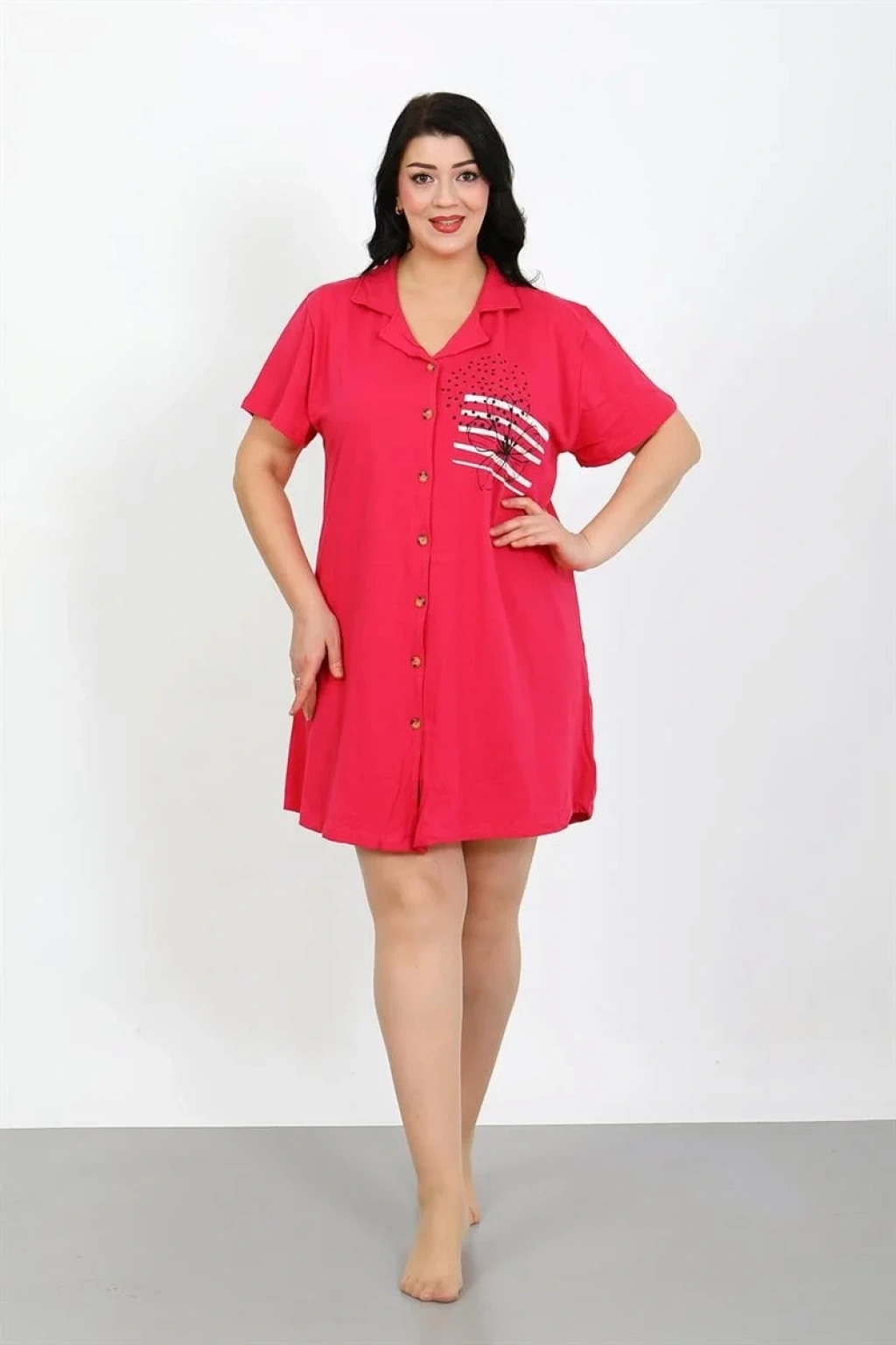 Çamaşır Kenti'nin Büyük Beden Penye Düğmeli Fuşya Tunik Geceliği ile her gece kendinizi özel hissedin!
