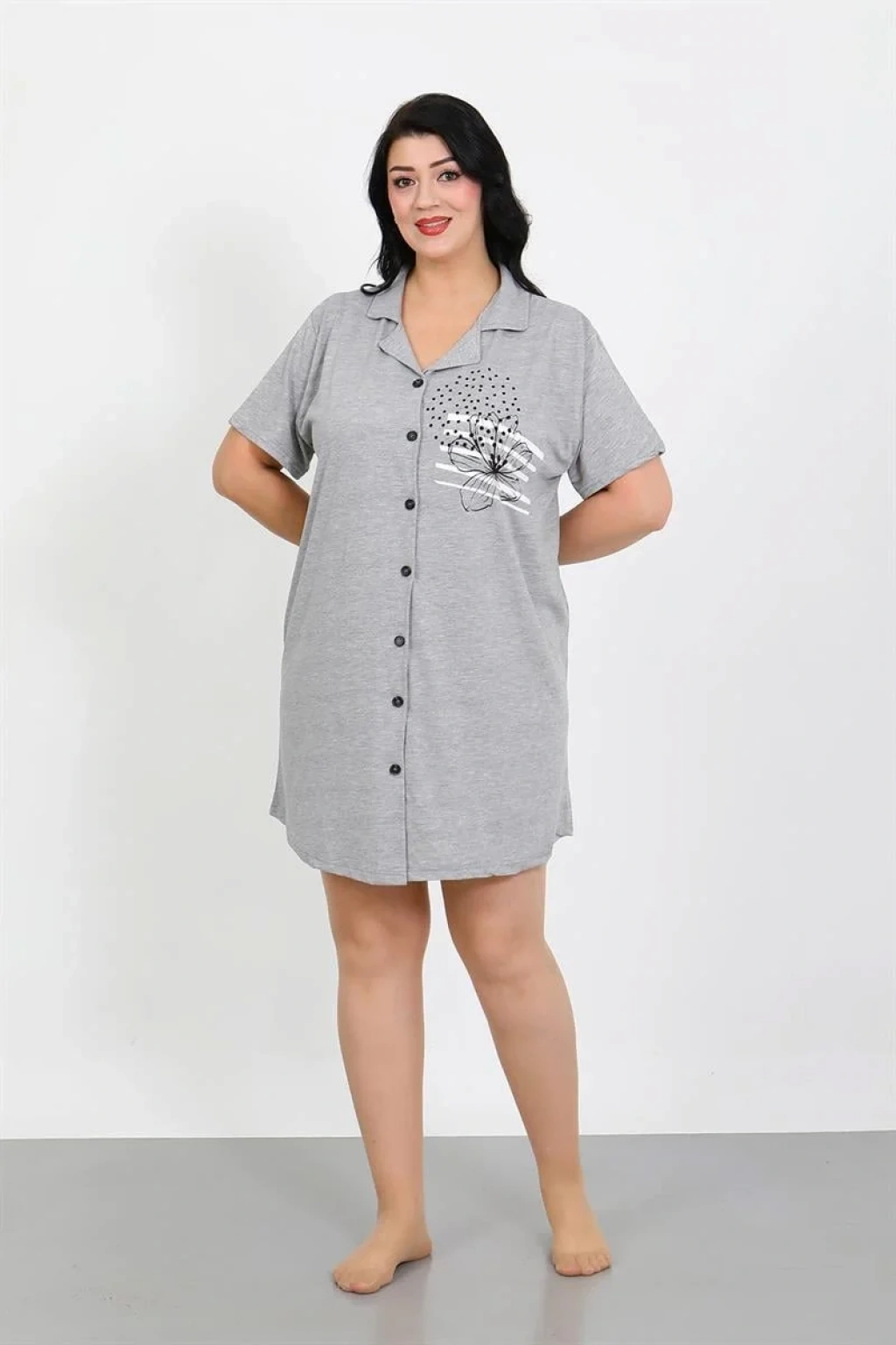 Çamaşır Kenti'nin Büyük Beden Penye Düğmeli Gri Tunik Geceliği ile her gece kendinizi özel hissedin!