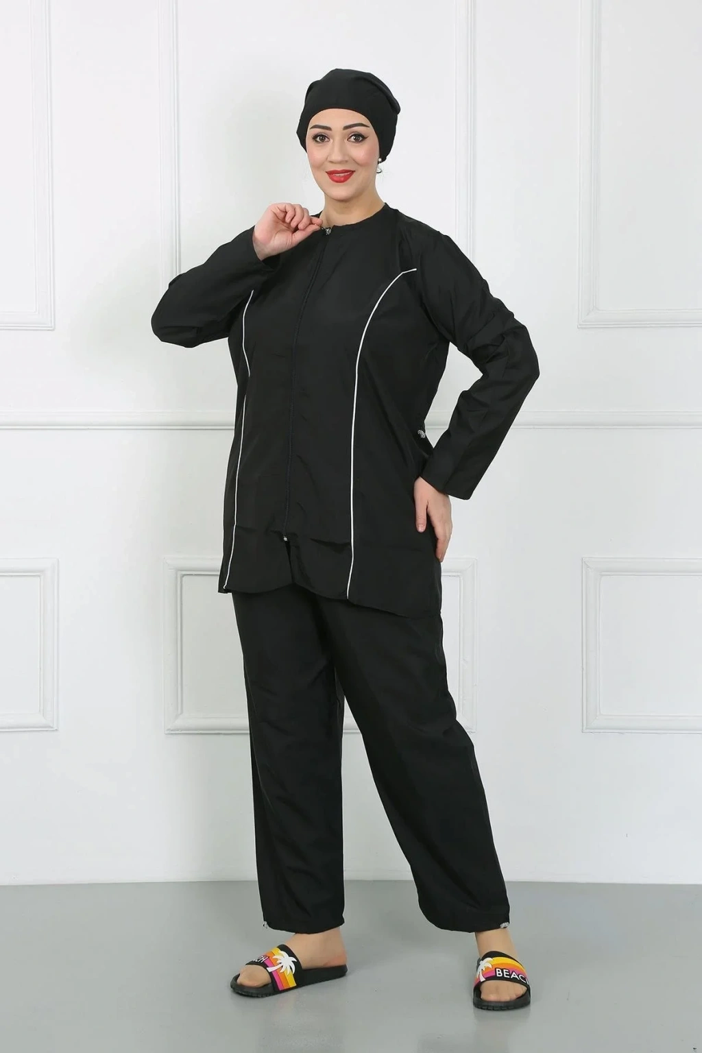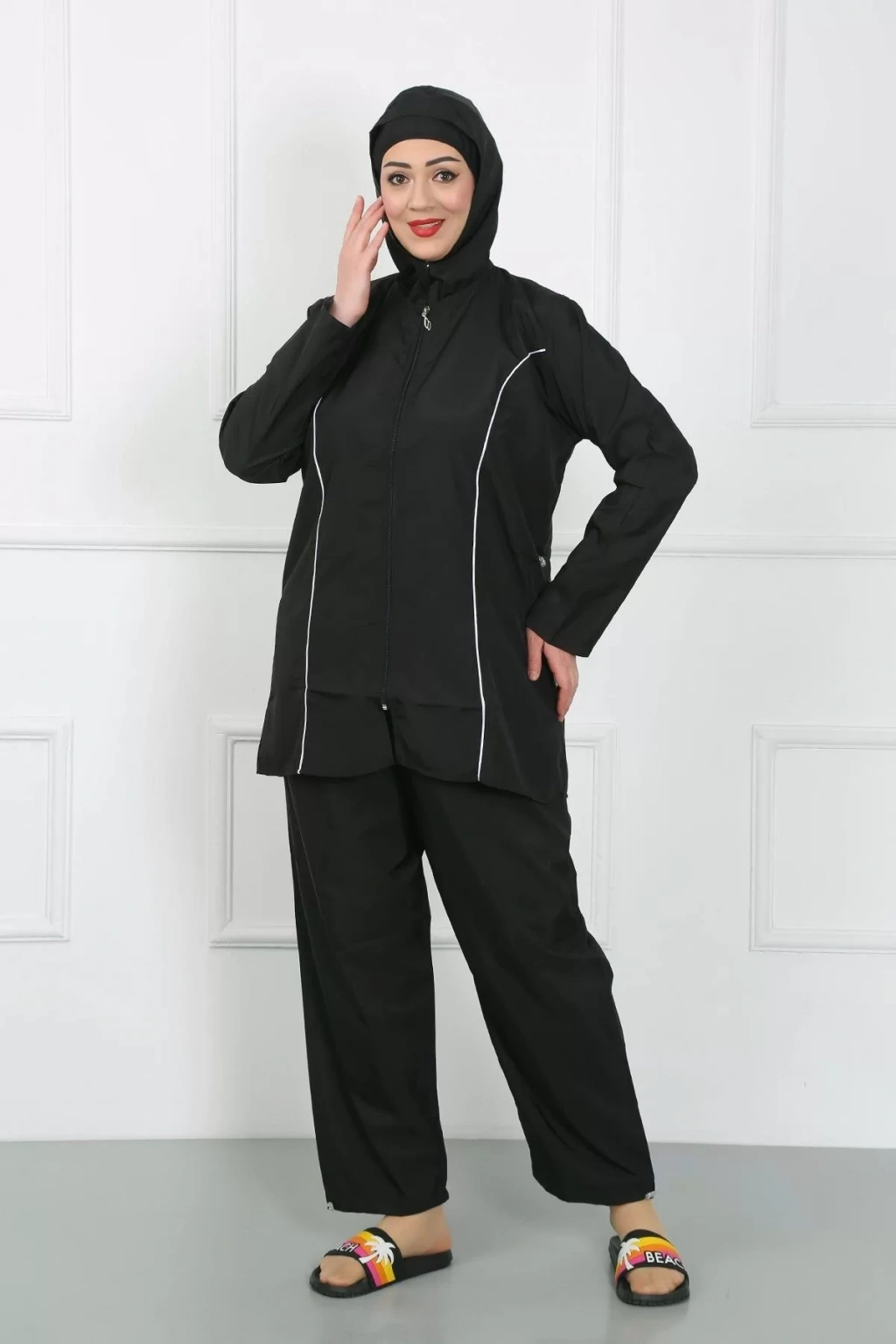 - Tesettüre uygun kesimi sayesinde plaj keyfini doyasıya yaşamanızı sağlar.