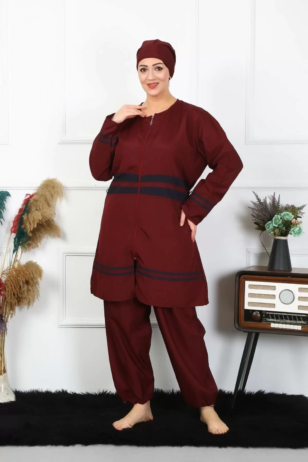 Çamaşır Kenti'nin özel tasarımı olan Büyük Beden Tesettür Mayo 7XL-8XL-9XL-10XL Bordo, plajda hem şıklığından ödün vermeyenler hem de konfor arayanlar için ideal bir seçimdir.