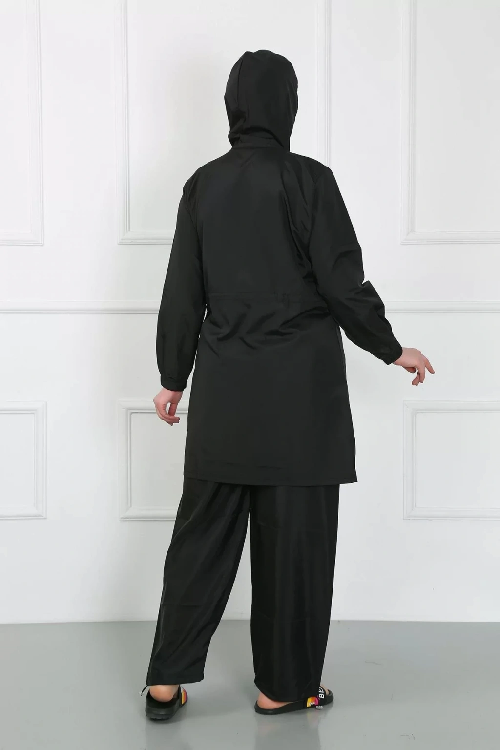 Moda Tam Kapalı Büyük Beden Siyah Mayo