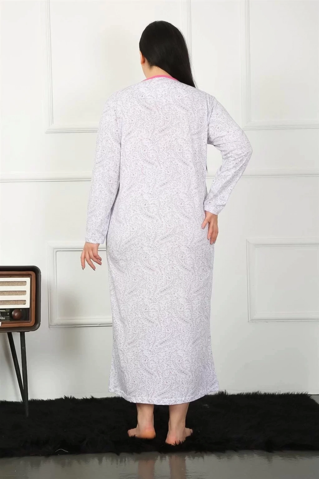 Çamaşır Kenti'nin Fuşya rengi anne geceliği, büyük beden ve uzun kollu tasarımıyla şıklığı ve rahatlığı bir arada sunuyor.