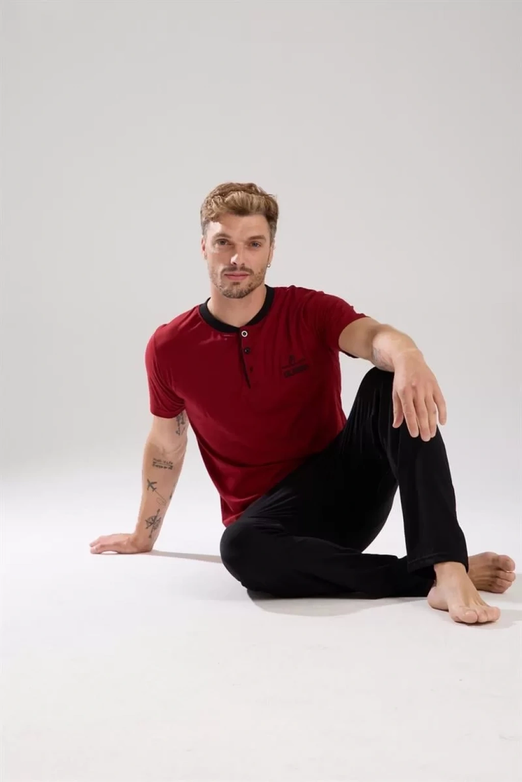 Çamaşır Kenti Erkek Bordo Düğmeli Yaka Kısa Kol Pijama Takımı ile rahatlığı ve şıklığı bir arada yaşayın.