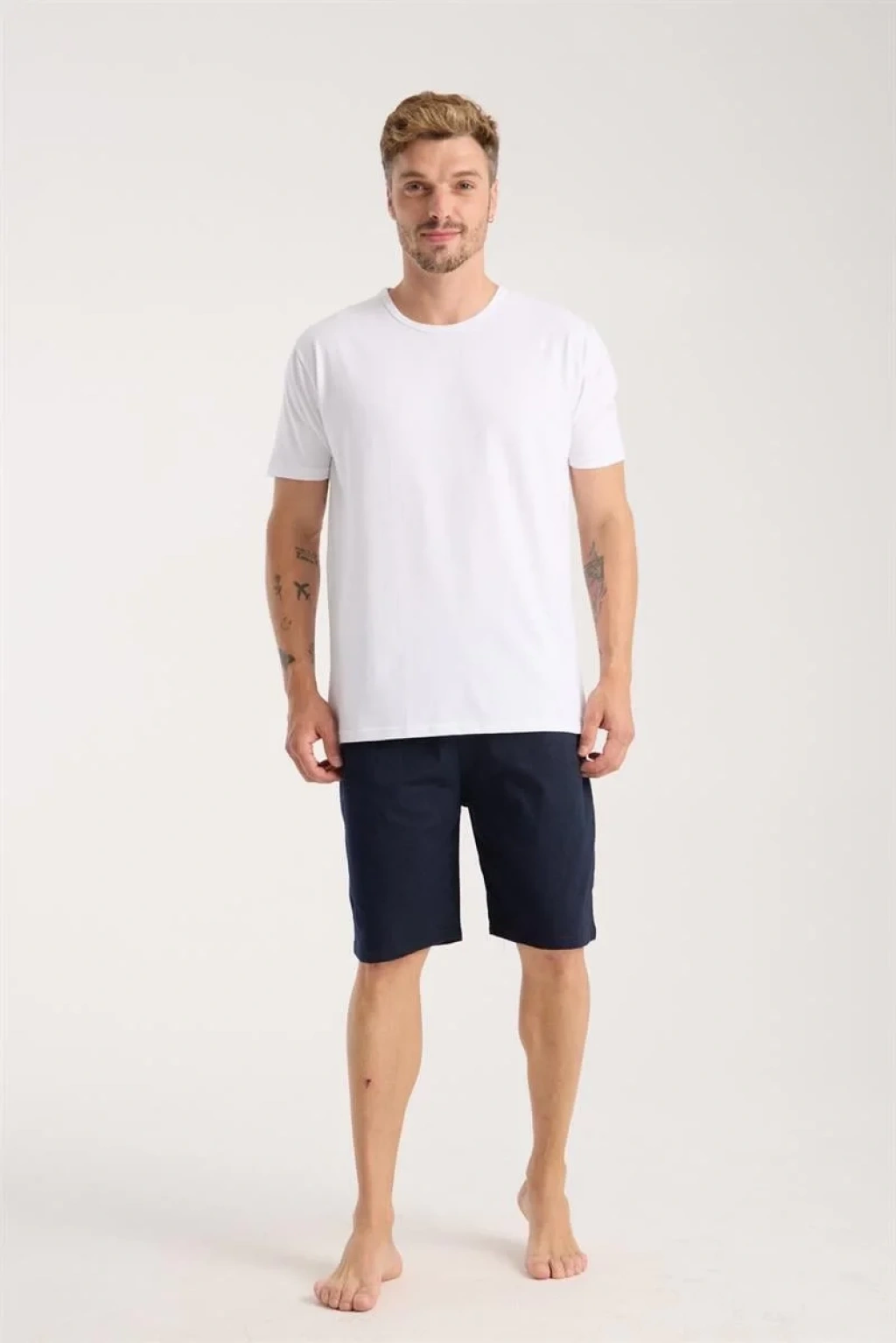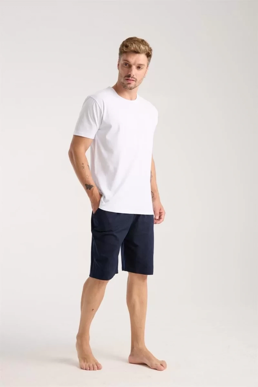Moda Erkek Cepli Pamuk Penye Şort Lacivert