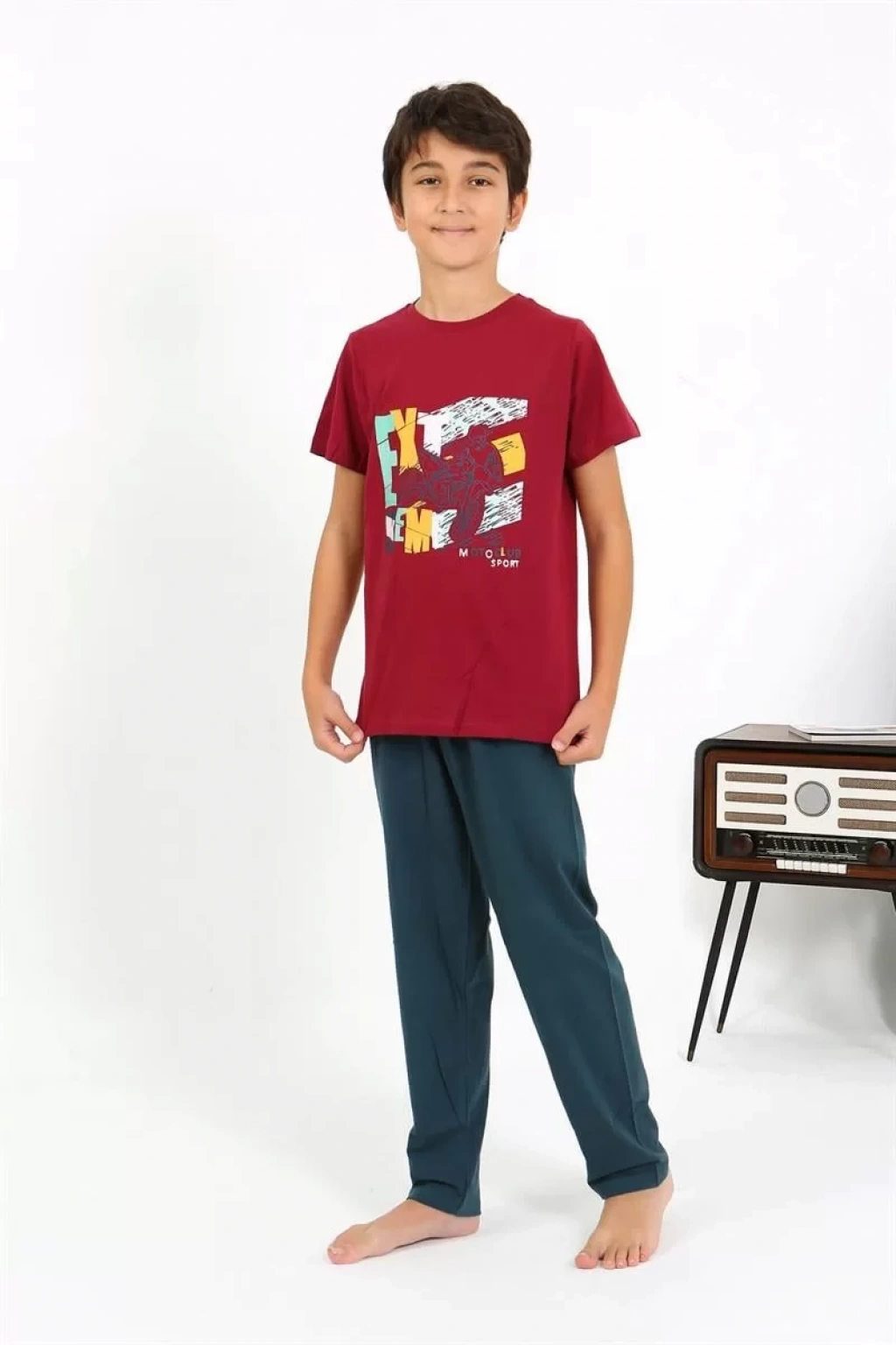 Çamaşır Kenti Erkek Çocuk Kısa Kol Penye Pijama Takımı Bordo, hem şık hem de rahat bir uyku deneyimi sunar.