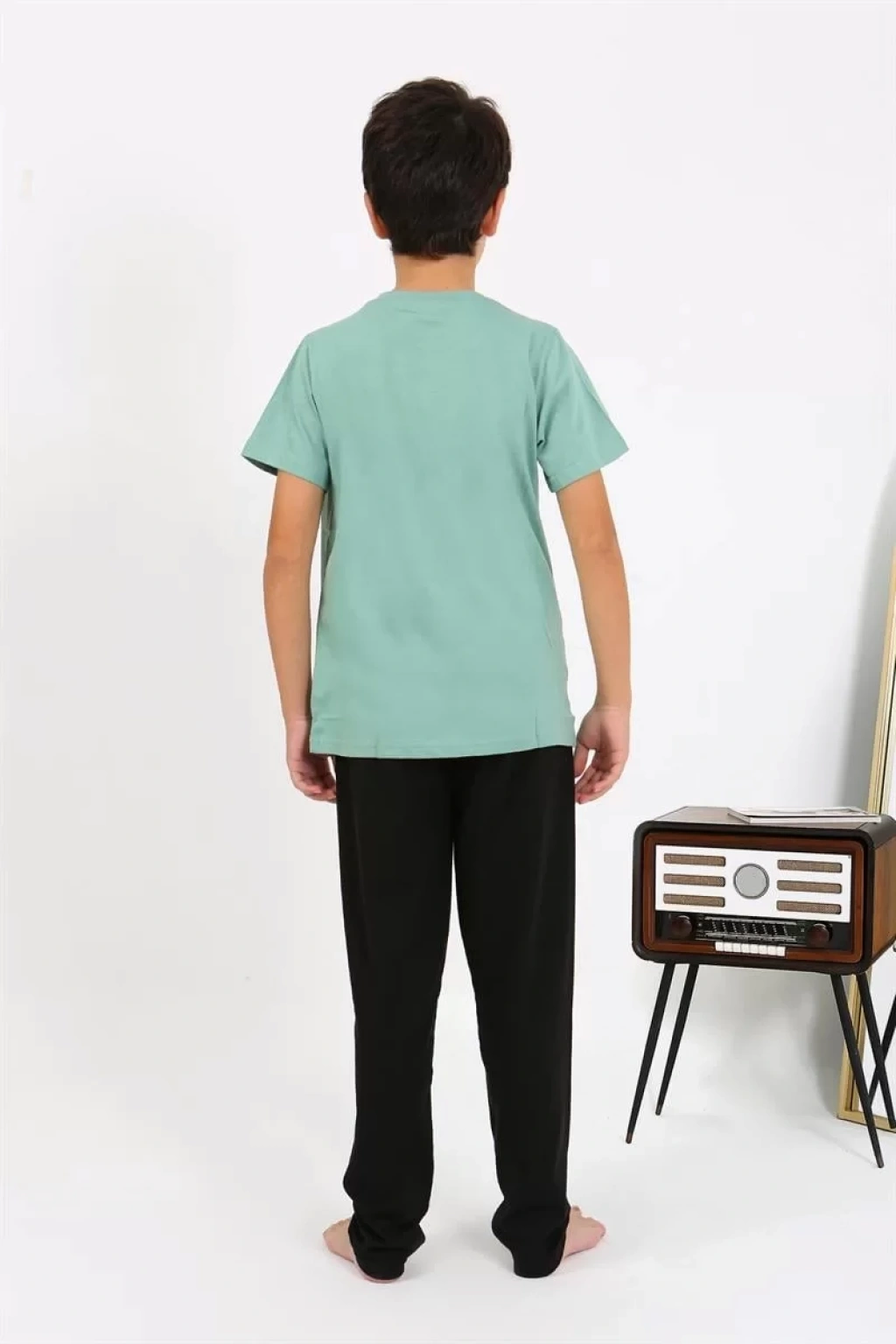 Çamaşır Kenti Erkek Çocuk Kısa Kol Penye Pijama Takımı Su Yeşili, hem şık hem de rahat bir uyku deneyimi sunar.