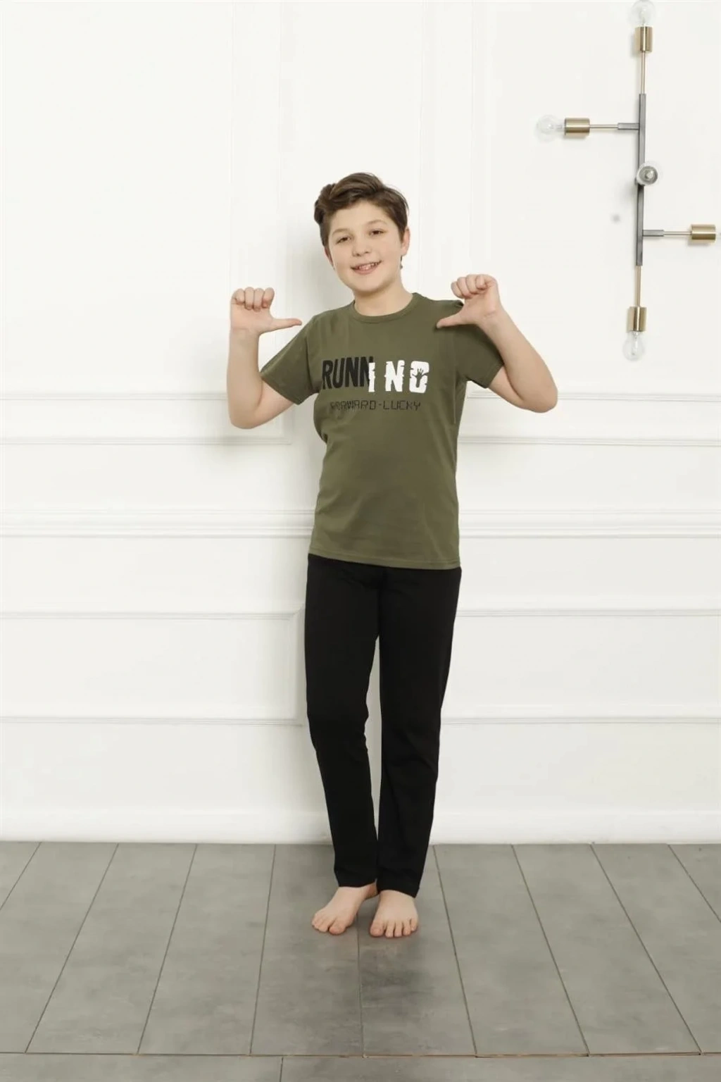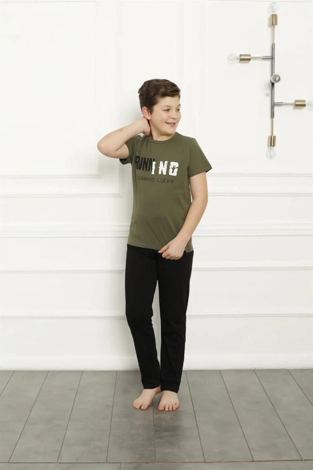 Erkek Çocuk Pamuk Kısa Kollu Pijama Takımı Haki, çocuğunuzun uyku keyfini arttıracak ve ona rahat bir gece geçirtirken şık görünmesini sağlayacak harika bir seçenektir.