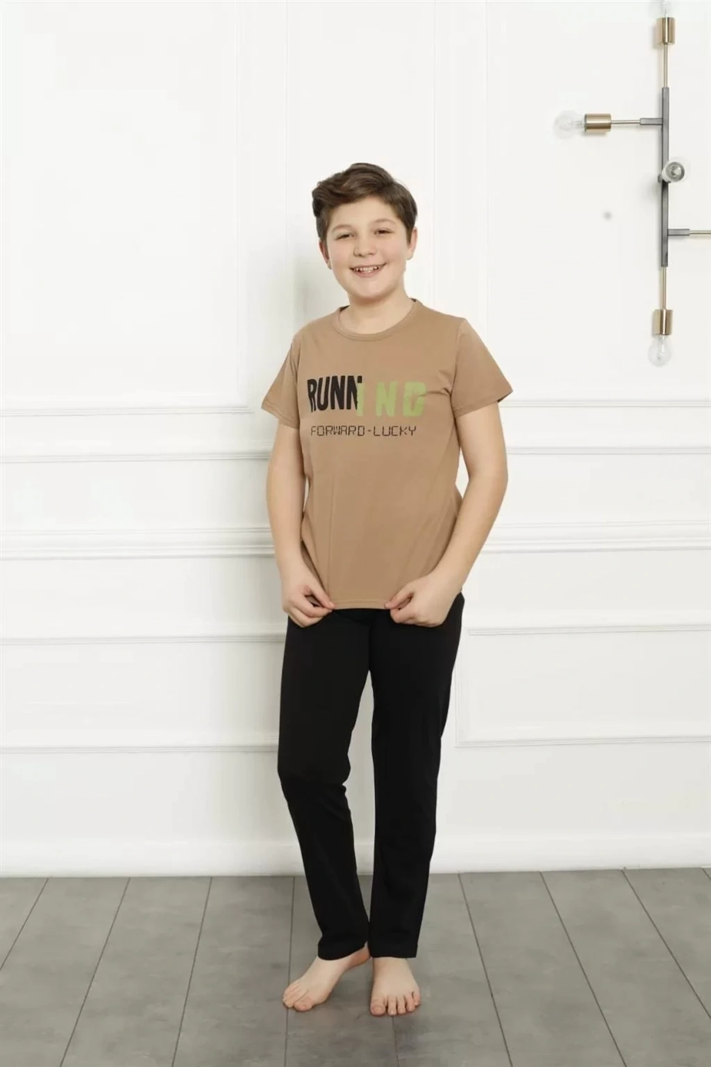 Çocuğunuz için rahatlık ve şıklığı bir arada sunan Çamaşır Kenti marka kahve rengi kısa kollu pijama takımı, hem gündüz hem de gece kullanımı için idealdir. %100 pamuk kumaştan üretilmiştir ve yumuşacık dokusu ile çocuğunuzun tenine zarar vermez.