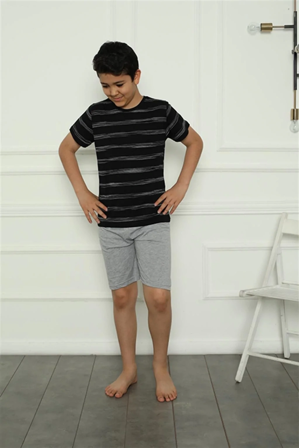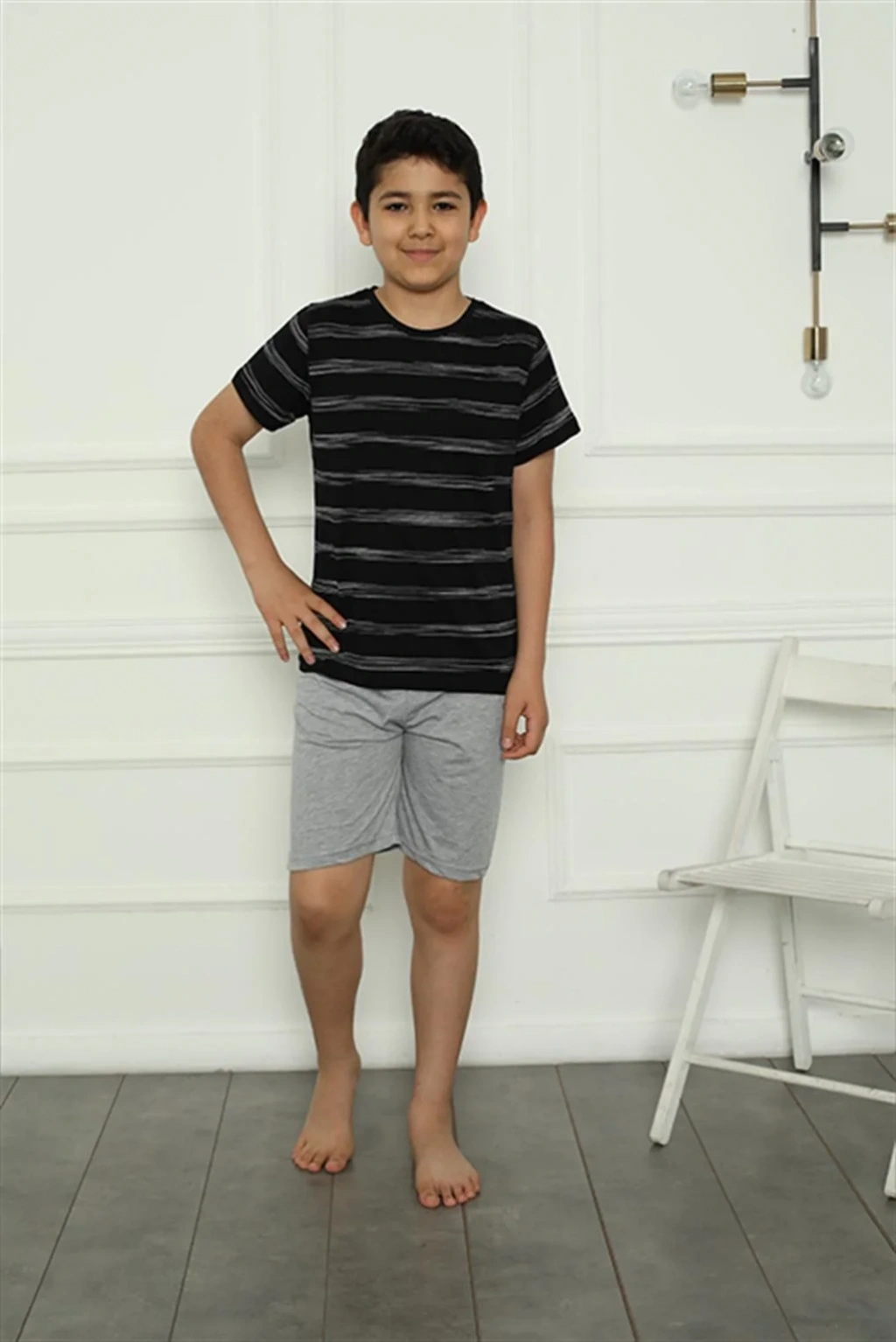 Penye kumaştan üretilmiş şortlu pijama takımı, çocuğunuzun gece boyunca konforlu bir uyku geçirmesini sağlar.
