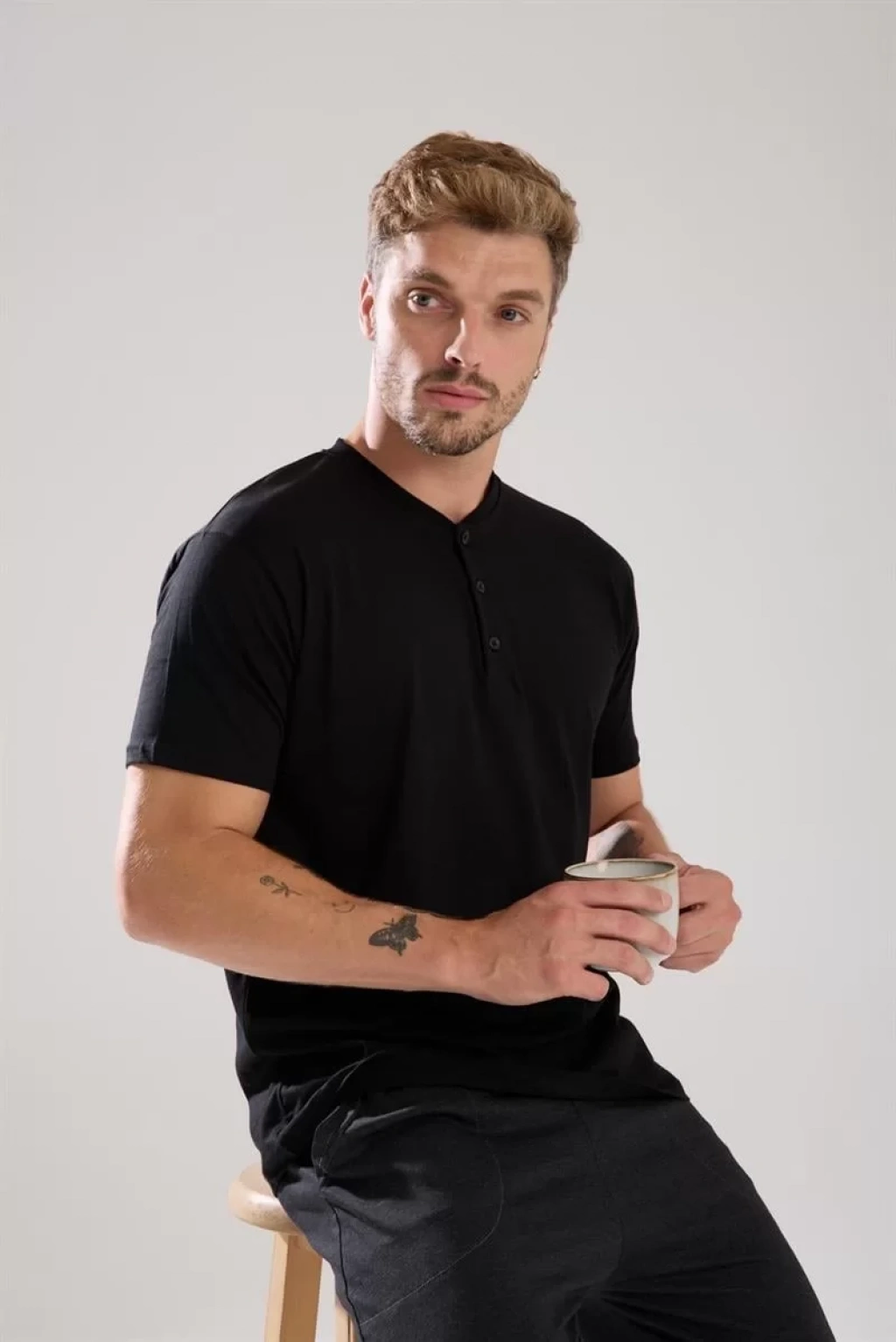 Şıklığından ödün vermeyen erkeklerin tercihi olan Füme Düğmeli Yaka Kısa Kol Pijama Takımı, evde geçirdiğiniz zamanlarda da konforu ön planda tutar.