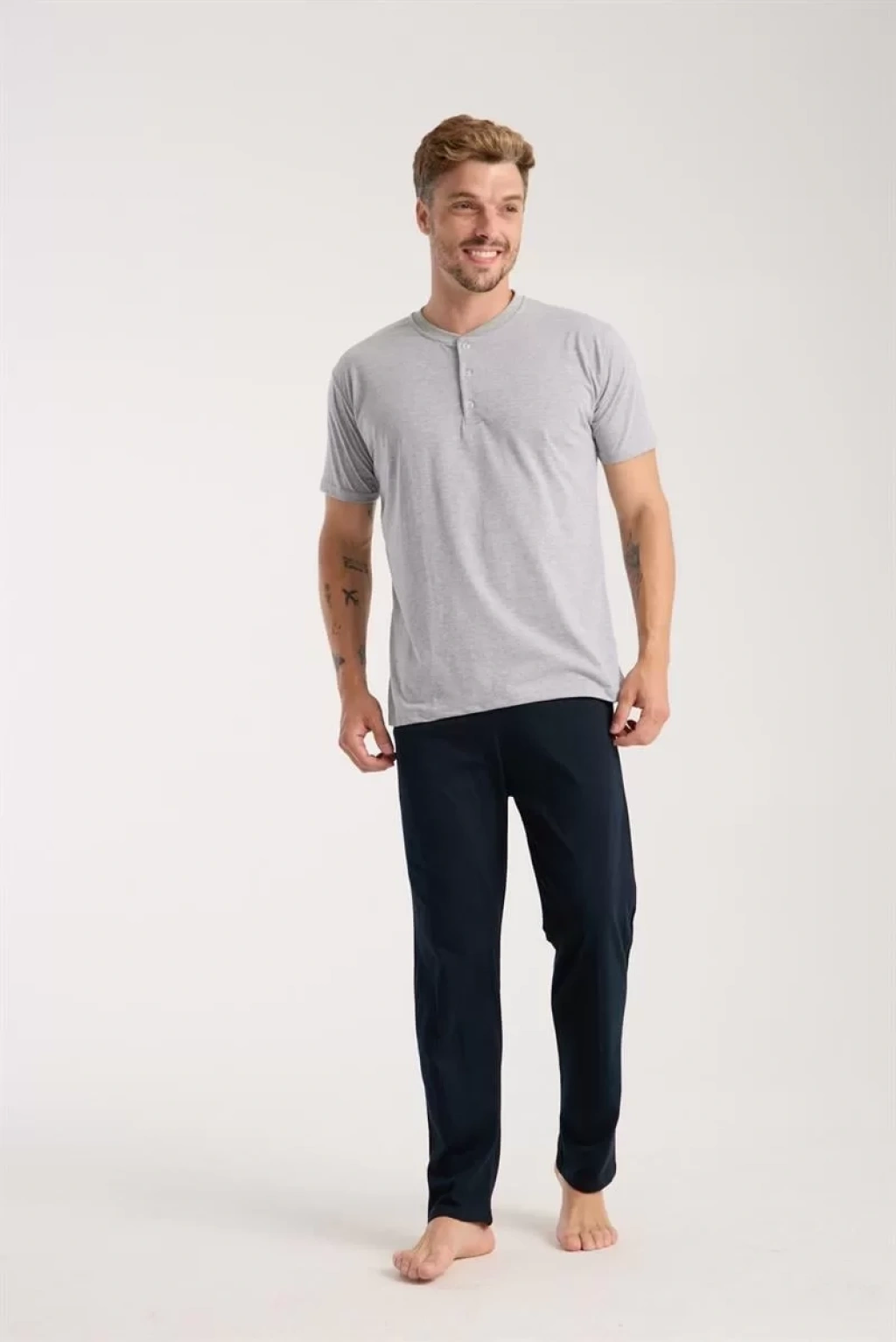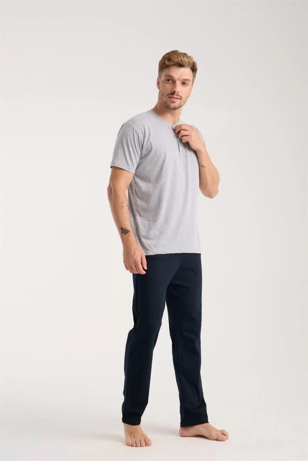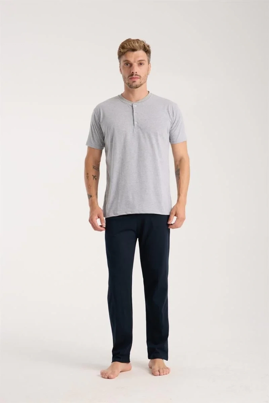 Çamaşır Kenti markasının şıklık ve rahatlığı bir arada sunan Erkek Gri Düğmeli Yaka Kısa Kol Pijama Takımı, gecelerin vazgeçilmezi olmaya aday!