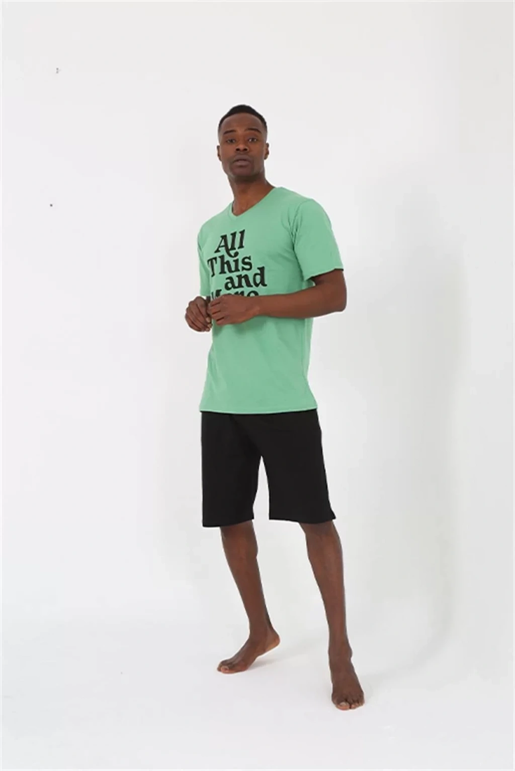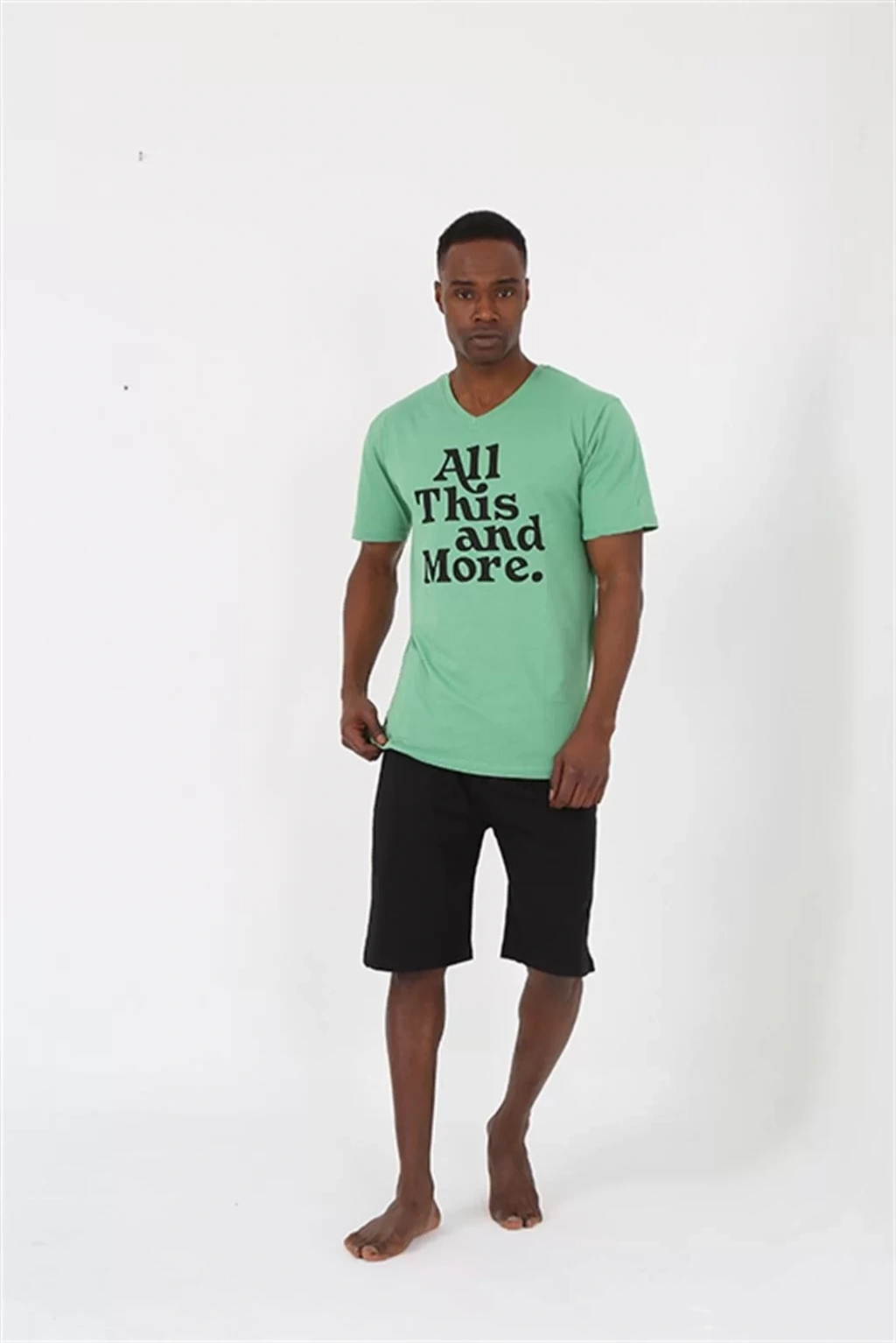 Çamaşır Kenti erkek kısa kol Yeşil penye şortlu pijama takımı sayesinde gece giysilerinde şıklığı ve konforu bir arada yaşayabilirsiniz.