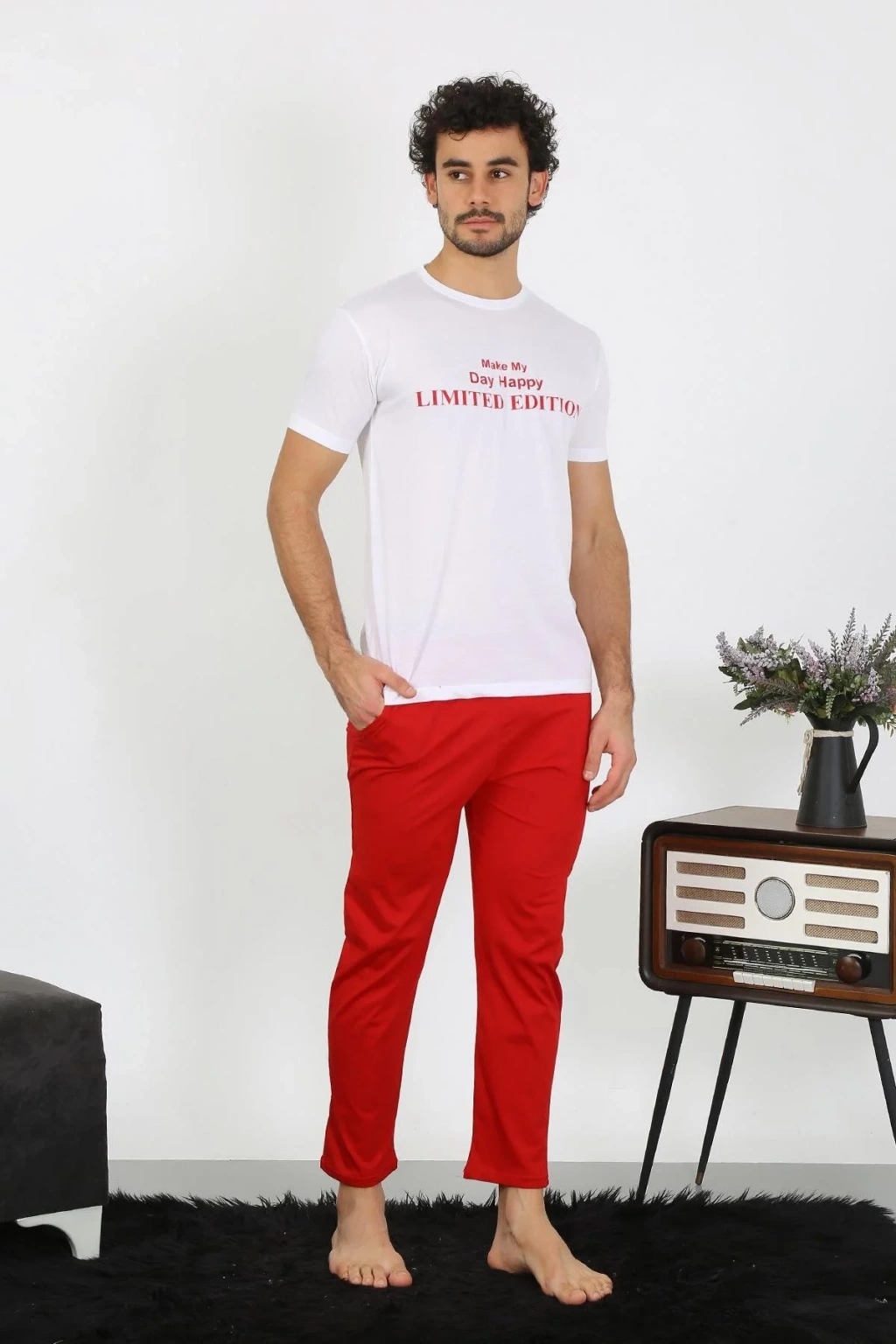 Erkek %100 Pamuk Cepli Kısa Kol Pijama Takımı