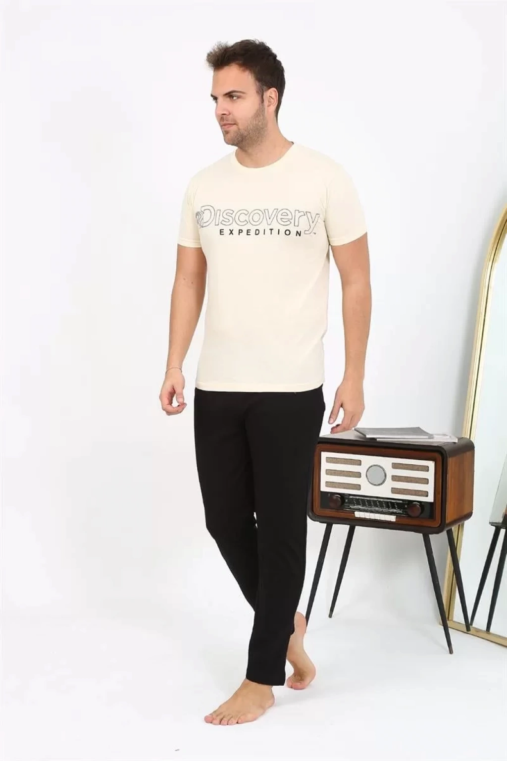 Moda Erkek Pamuk Kısa Kol Pijama Takım Vizon