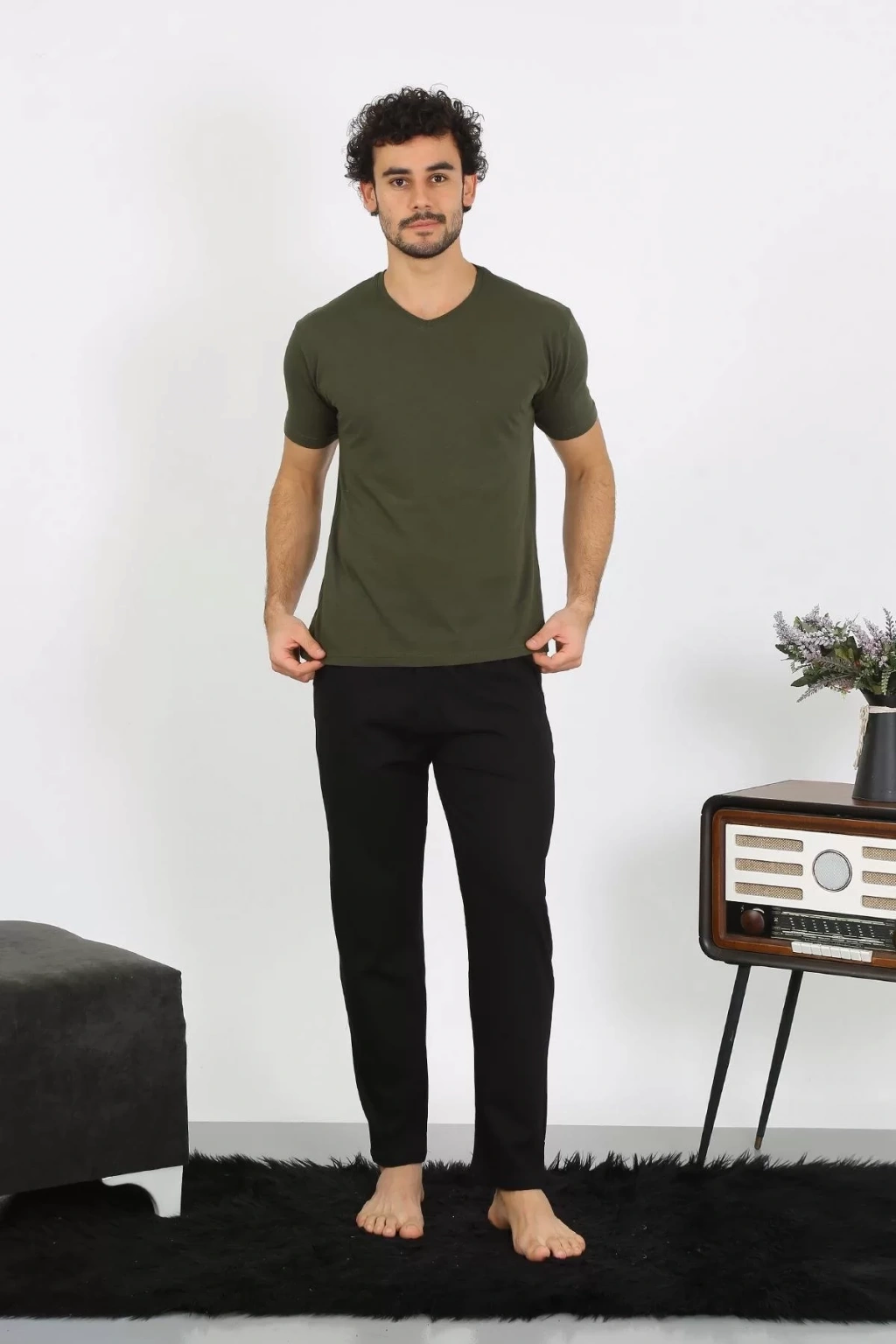 Çamaşır Kenti tarafından özel olarak tasarlanan Erkek Penye Haki Rengi 3'lü Pijama Takımı, konfor ve şıklığı bir arada sunar.