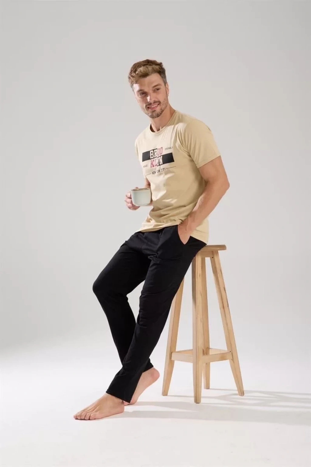 Çamaşır Kenti'nin erkek ten rengi kısa kol pijama takımıyla şıklığı ve rahatlığı bir arada yaşayın.