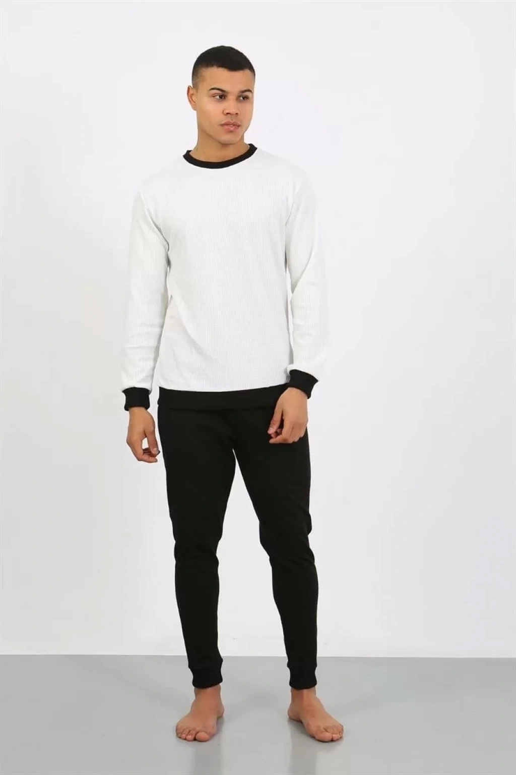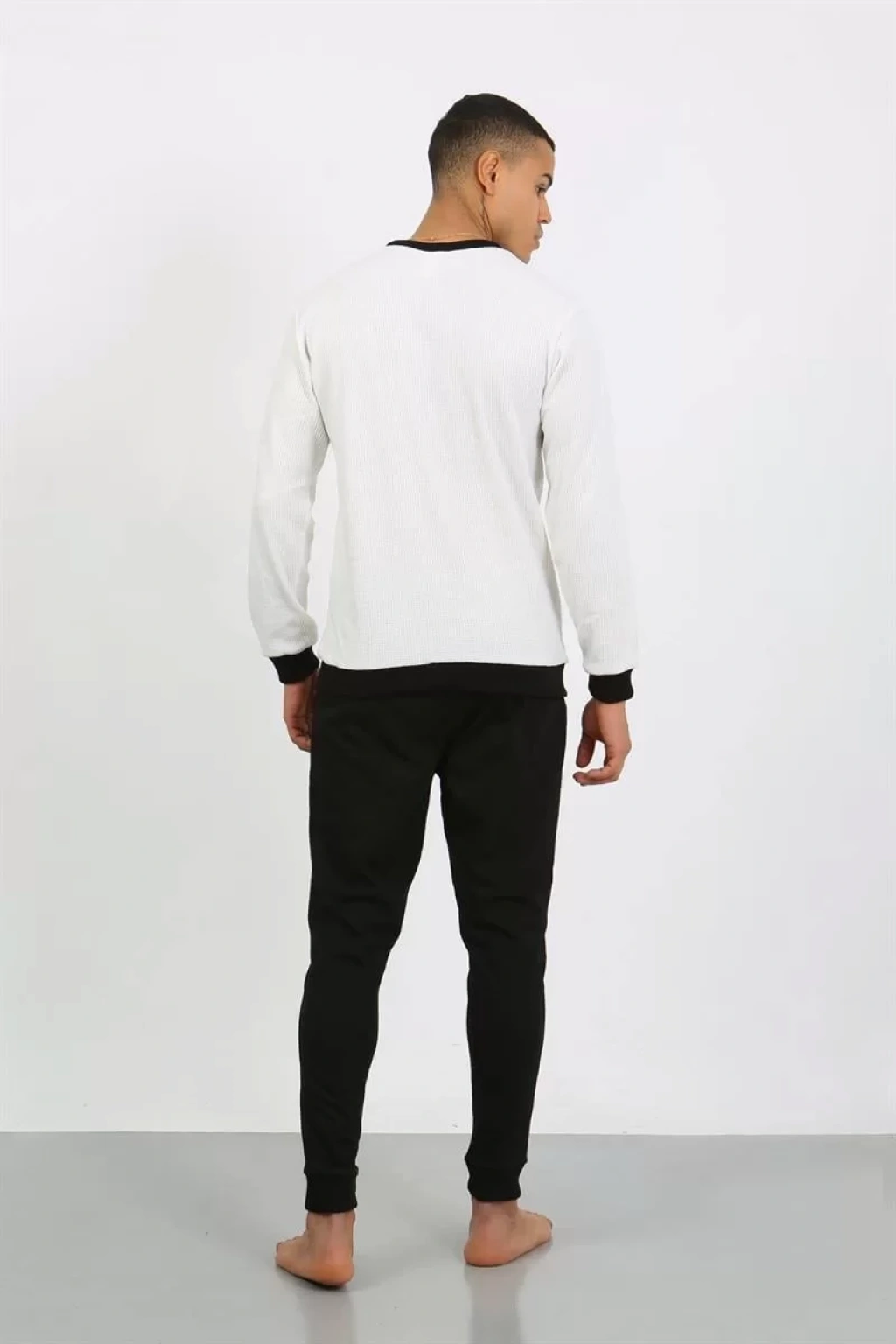 Çamaşır Kenti markasının şıklığı ve rahatlığı bir araya getirdiği Erkek Uzun Kol Manşetli Paça Penye Pijama Takımı Beyaz, gecelerinize konfor katacak.