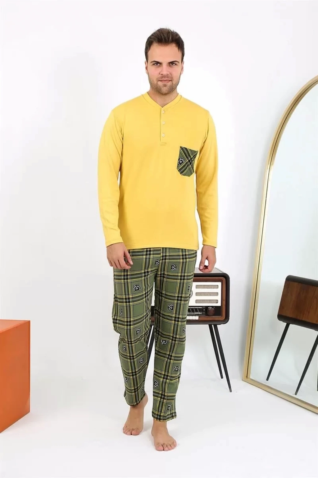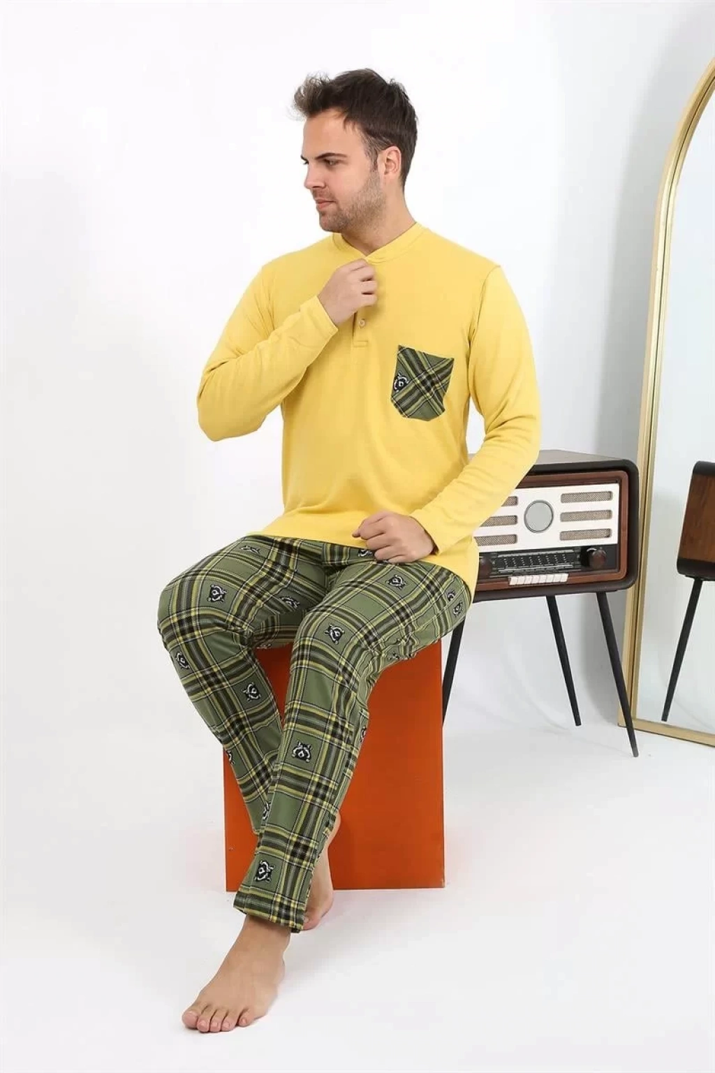 Uyku dünyasında konfor arayan erkeklerin tercihi olan Çamaşır Kenti Uzun Kol Penye Sarı Pijama Takımını hemen keşfedin!