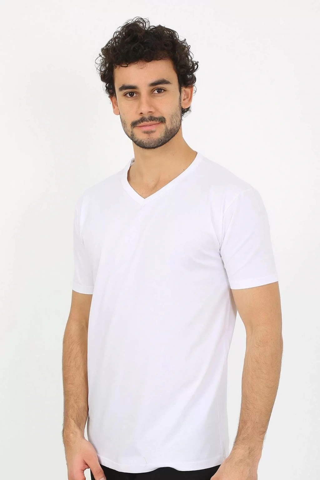 Moda Erkek V Yaka Beyaz Penye Atlet