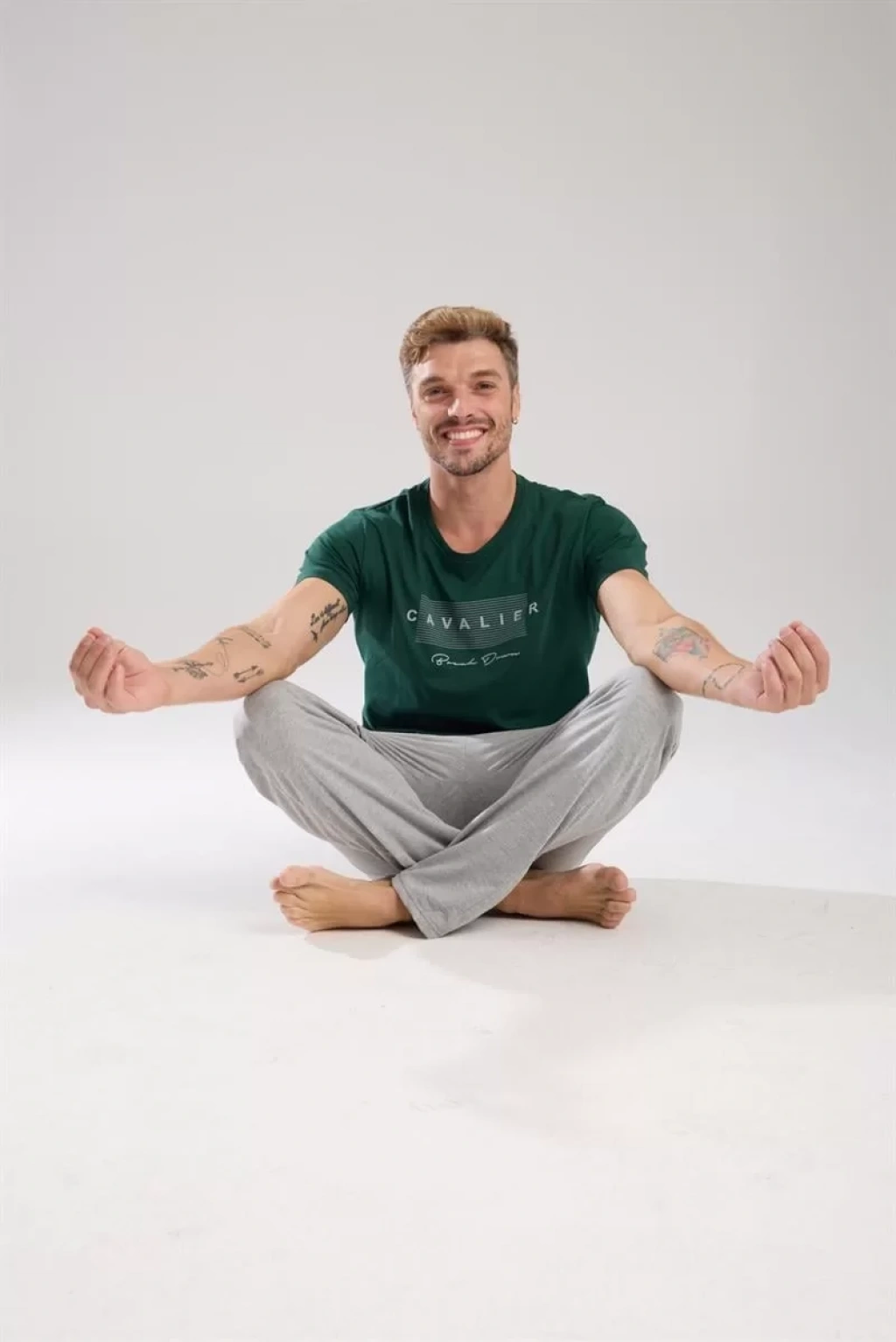 Çamaşır Kenti erkek yeşil kısa kol pijama takımıyla rahatlığın keyfini yaşayın.