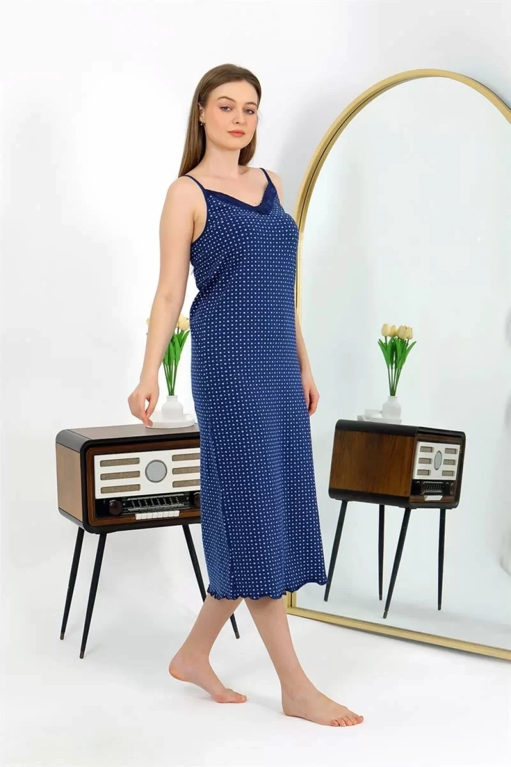 İp Askılı Uzun Yırtmaçlı Penye Gecelik Lacivert, hem şıklığı hem de konforu bir arada arayan kadınların gardırobunda yerini alacak ideal bir seçenektir.