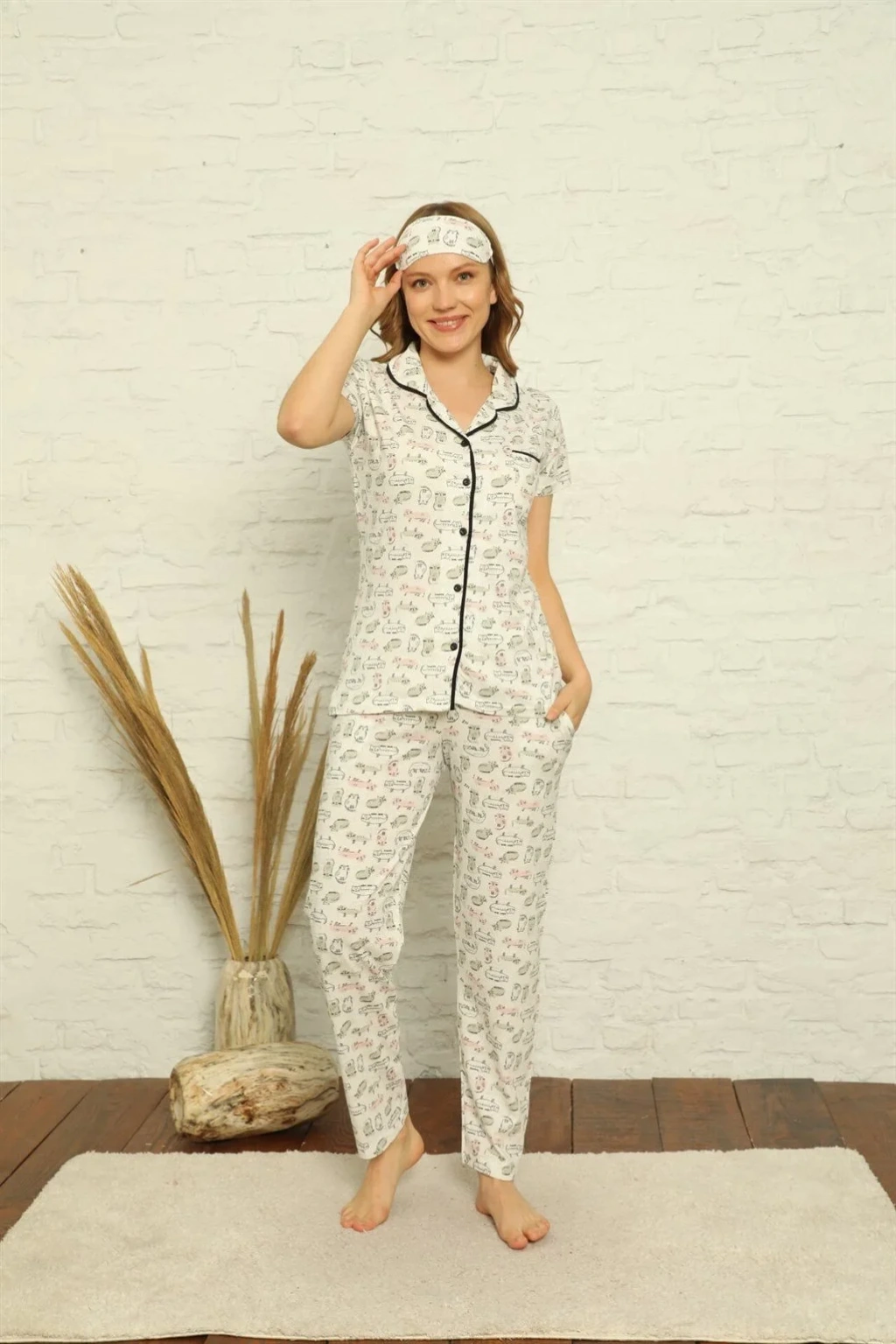 Kadın %100 Pamuk Önden Düğmeli Kısa Kol Pijama Takım
