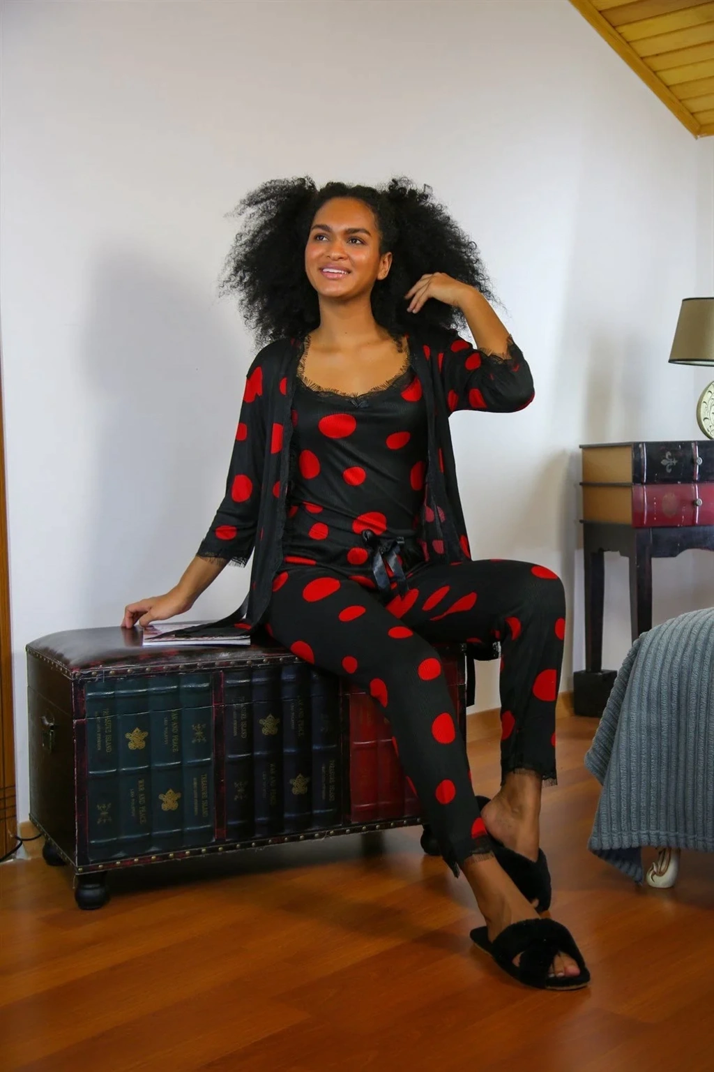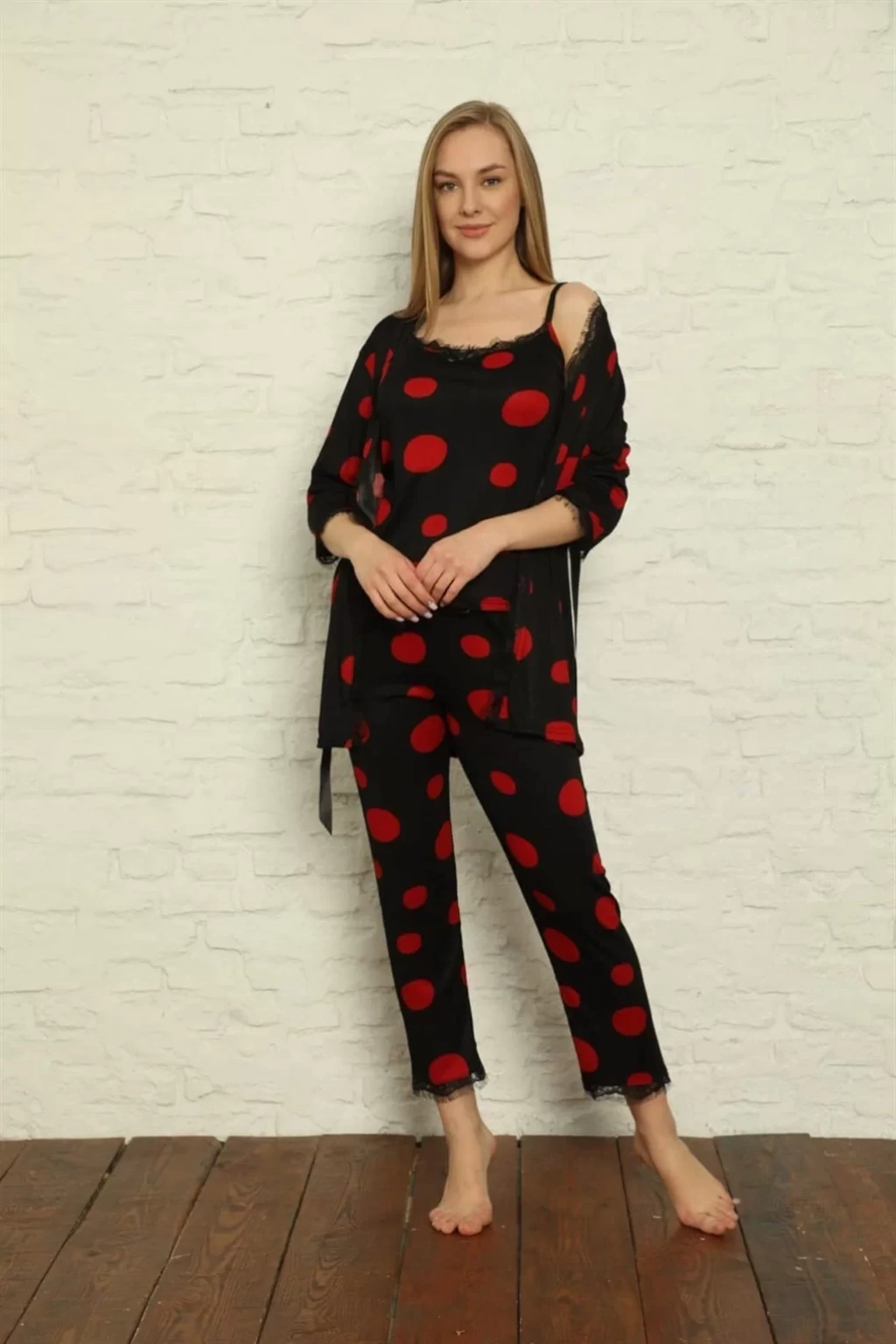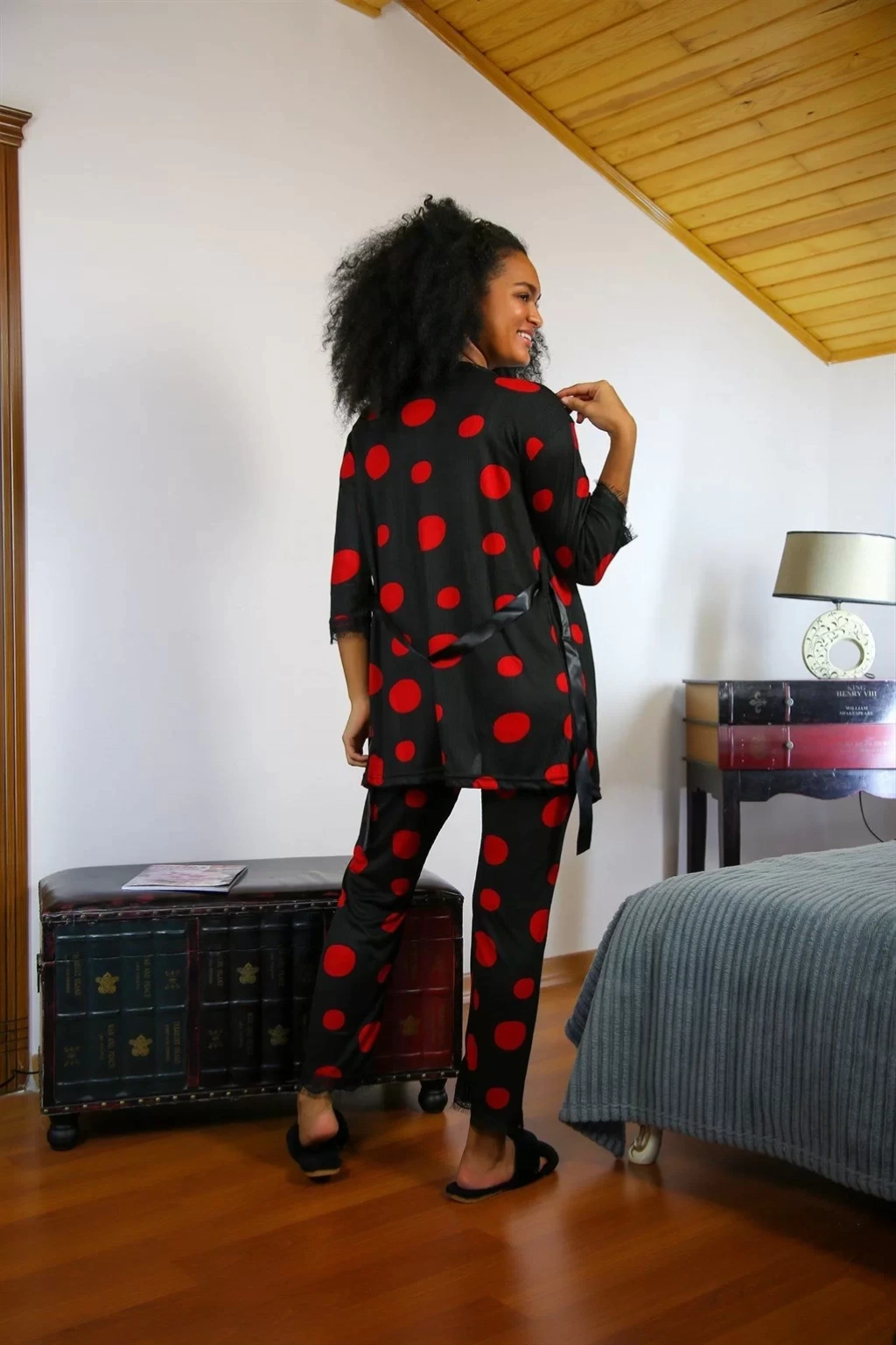 Çamaşır Kenti Kadın 3'lü Sabahlık Pijama Takımı Siyah ile geceyi şıklıkla karşılamaya hazır olun!