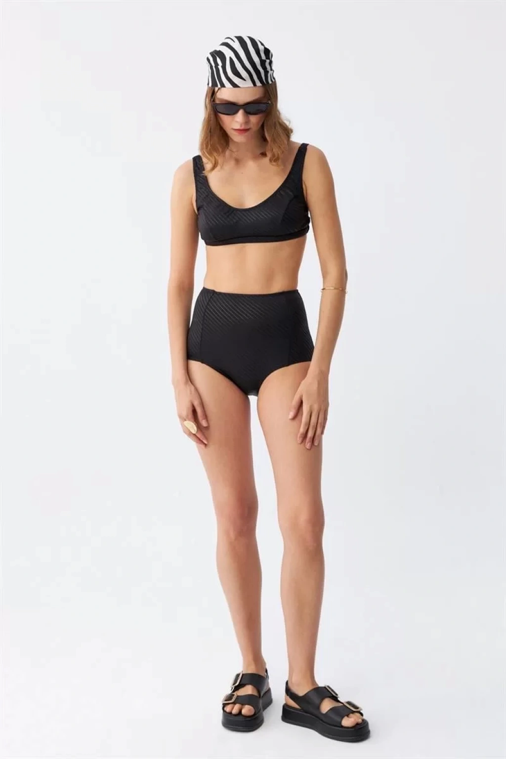 Kadın Siyah Pedli Kare Yaka Yüksek Bel Bikini Takımı