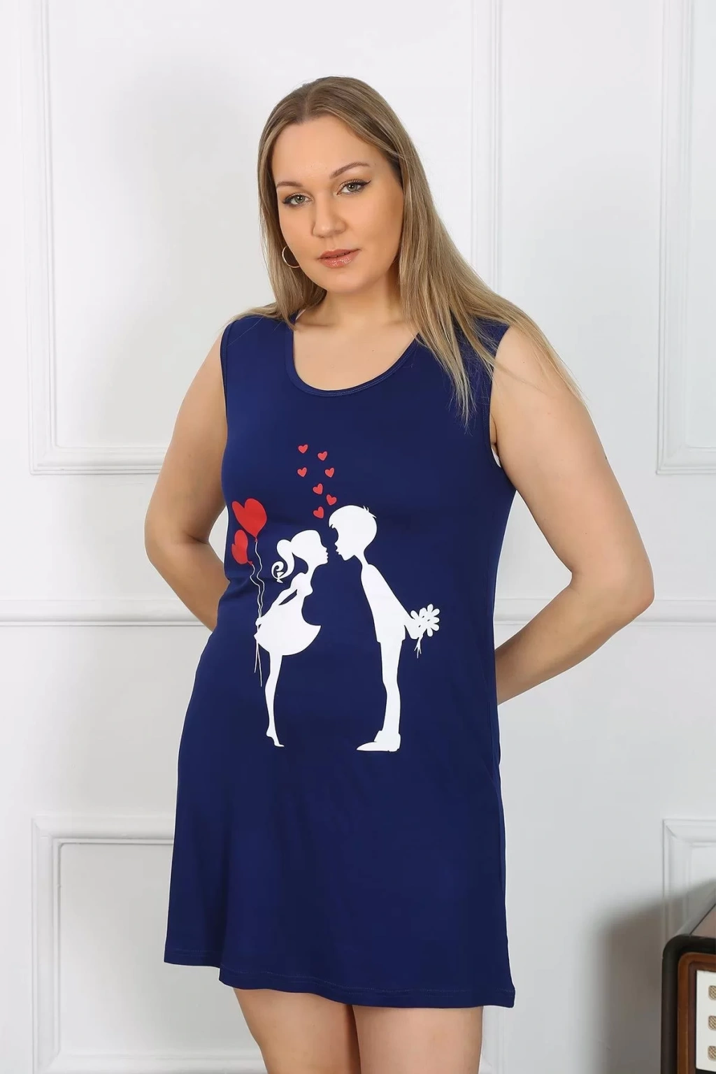 Kadın Büyük Beden Kalın Askılı Penye Diz Üstü Lacivert Gecelik, Çamaşır Kenti kalitesiyle şıklığı ve rahatlığı bir arada sunuyor.