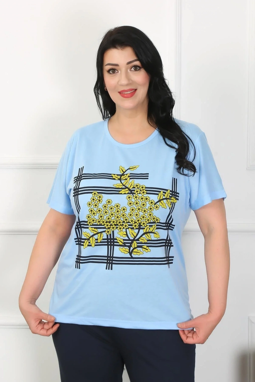 Çamaşır Kenti tarafından özel olarak tasarlanmış olan Kadın Büyük Beden Mavi Pijama Takımı, konfor ve şıklığı bir arada sunmaktadır.