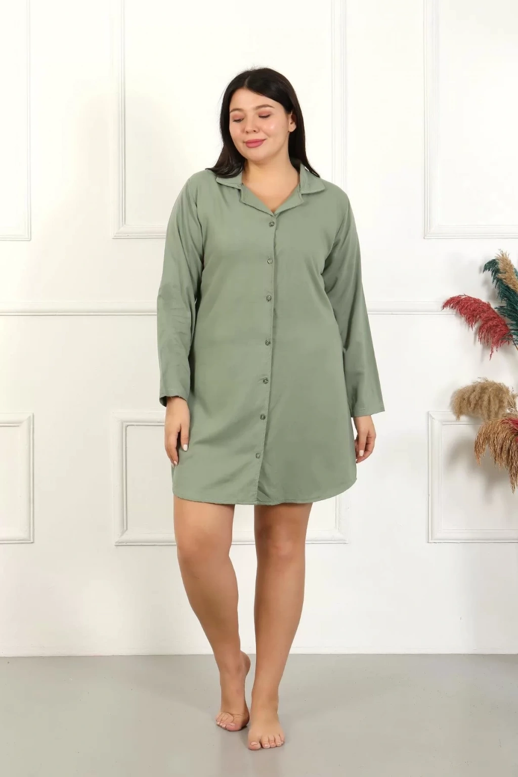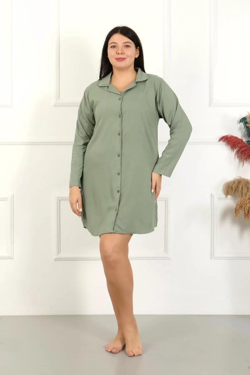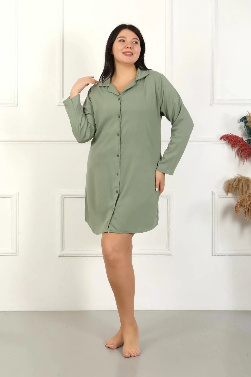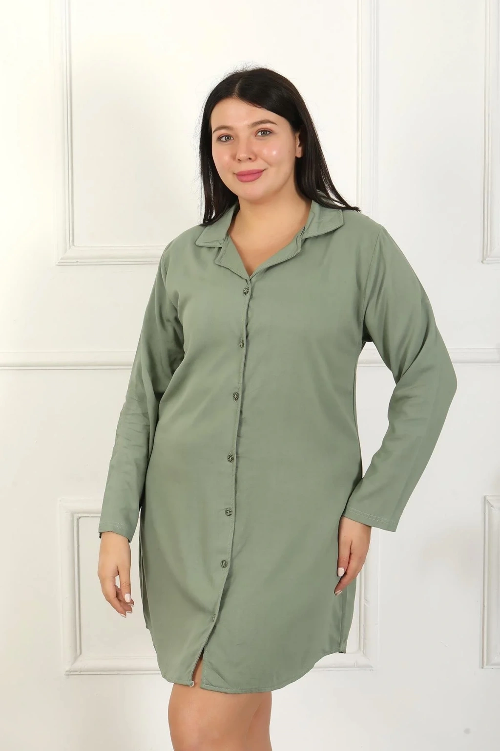 Çamaşır Kenti Kadın Büyük Beden Pamuk Düğmeli Uzun Kol Tunik Gecelik, rahat ve şık tasarımıyla hem günlük kullanıma hem de gece giyimine uygun bir seçenektir.