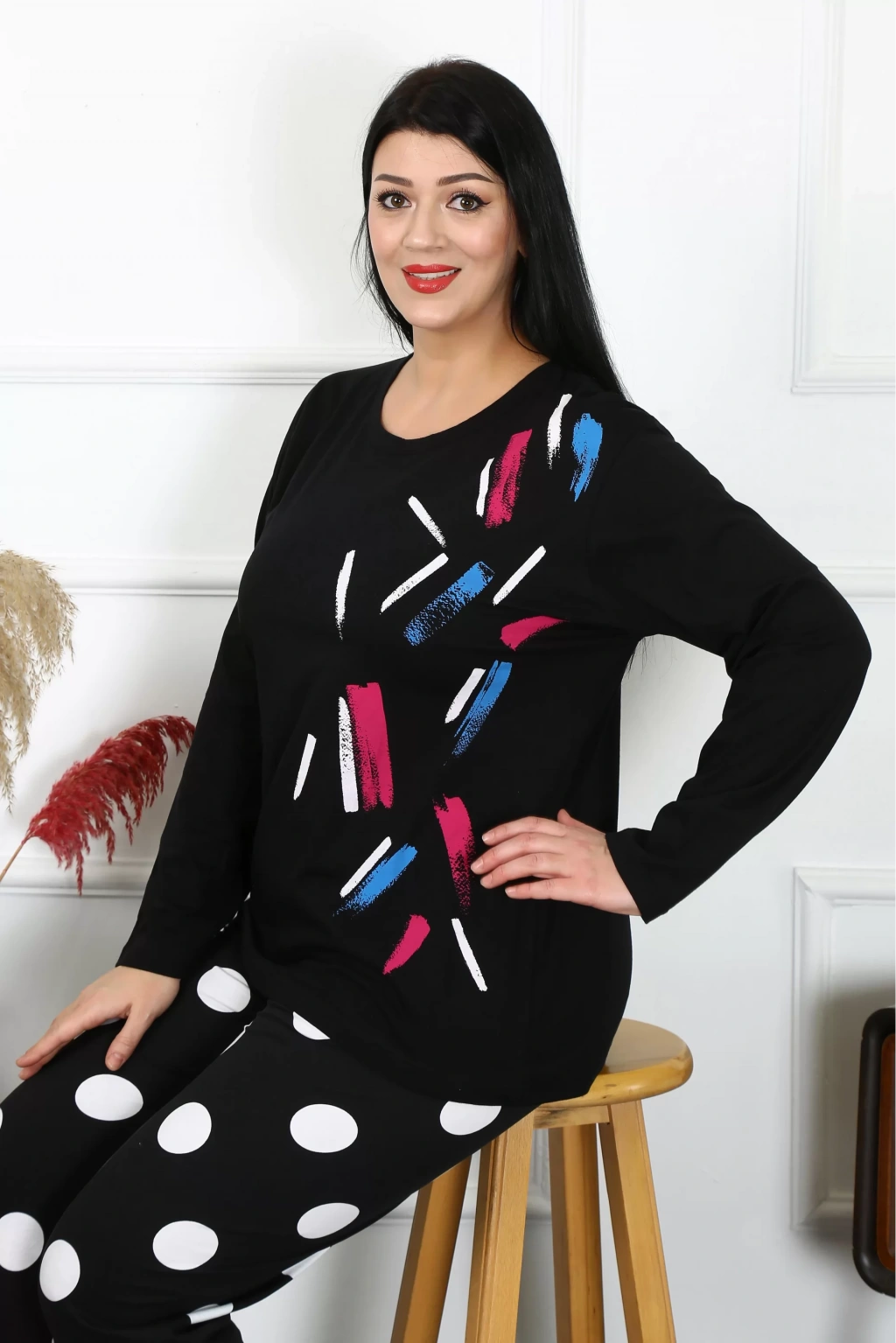 Çamaşır Kenti marka Kadın Büyük Beden Penye Uzun Kol Pijama Takımı, rahatlığı ve şıklığı bir arada sunar.