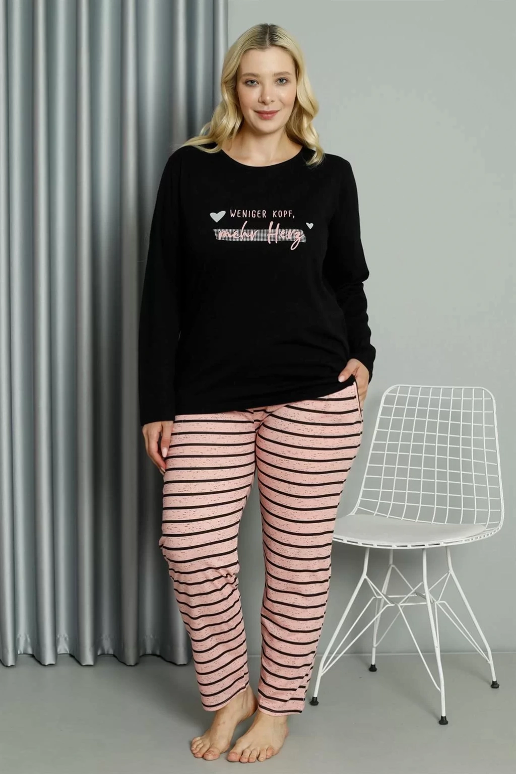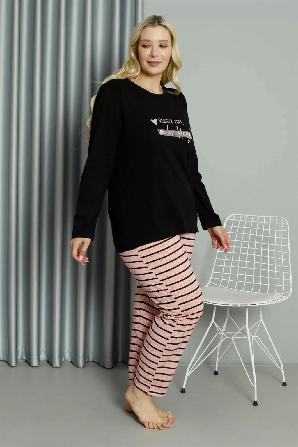 Kadın Büyük Beden Pijama Takım %100 cotton Mankenin üzerindeki beden 3XL bedendir.