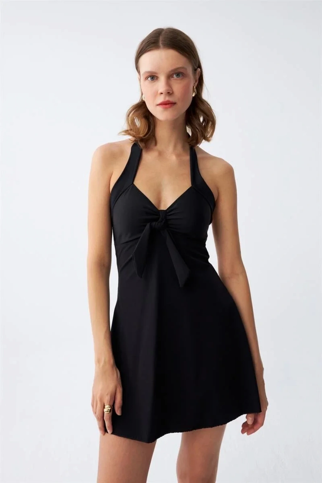 Bu yaz plajda tarzınızı konuşturmak, plaj partilerinin yıldızı olmak için Çamaşır Kenti Fiyonklu Siyah Elbise Mayoyu tercih edebilirsiniz.