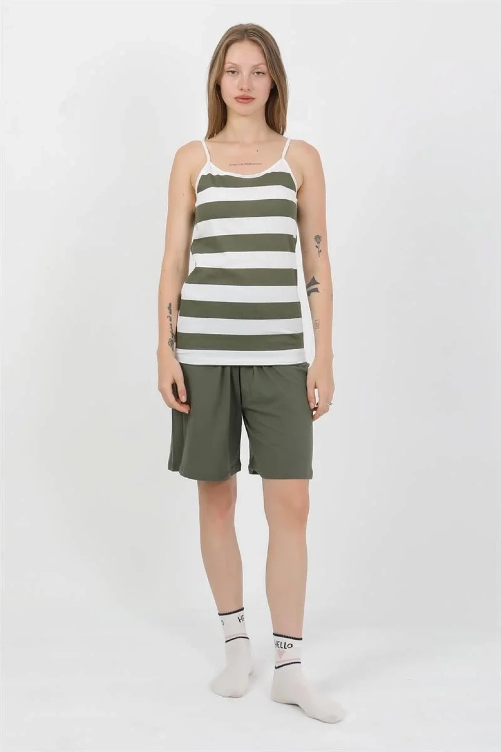 Çamaşır Kenti'nin şık ve rahat tasarımıyla öne çıkan Kadın İp Askılı Pamuk Penye Şortlu Takım Haki, yaz aylarının vazgeçilmez parçası olmaya aday! İnce ip askıları ve hafif dokusuyla maksimum konfor sunan bu takım, sıcak havalarda serinliği garantiler.