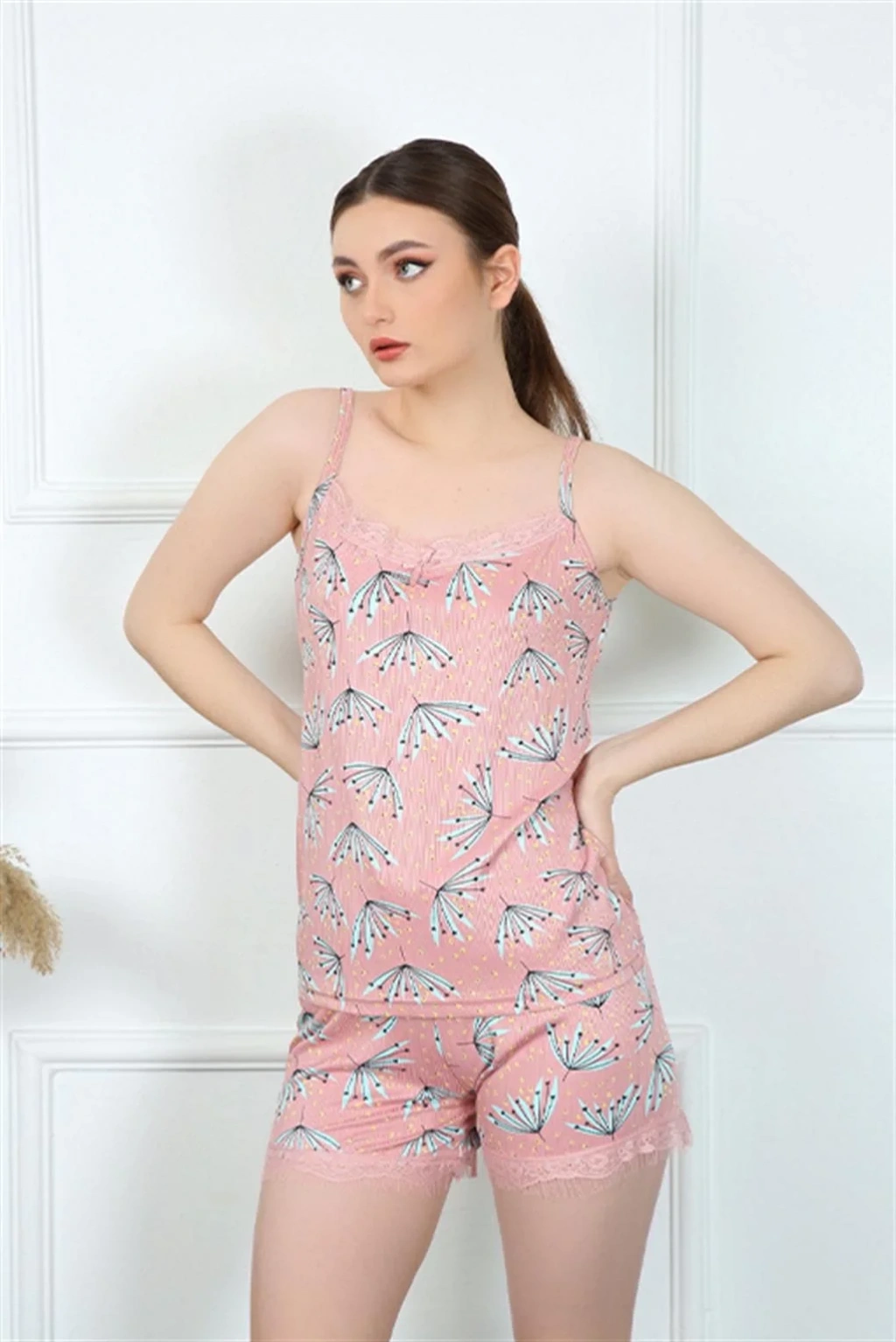 Çamaşır Kenti markasının şık ve rahat tasarımıyla öne çıkan Kadın İp Askılı Şortlu Takım Somon, yaz aylarının vazgeçilmez parçalarından biridir.