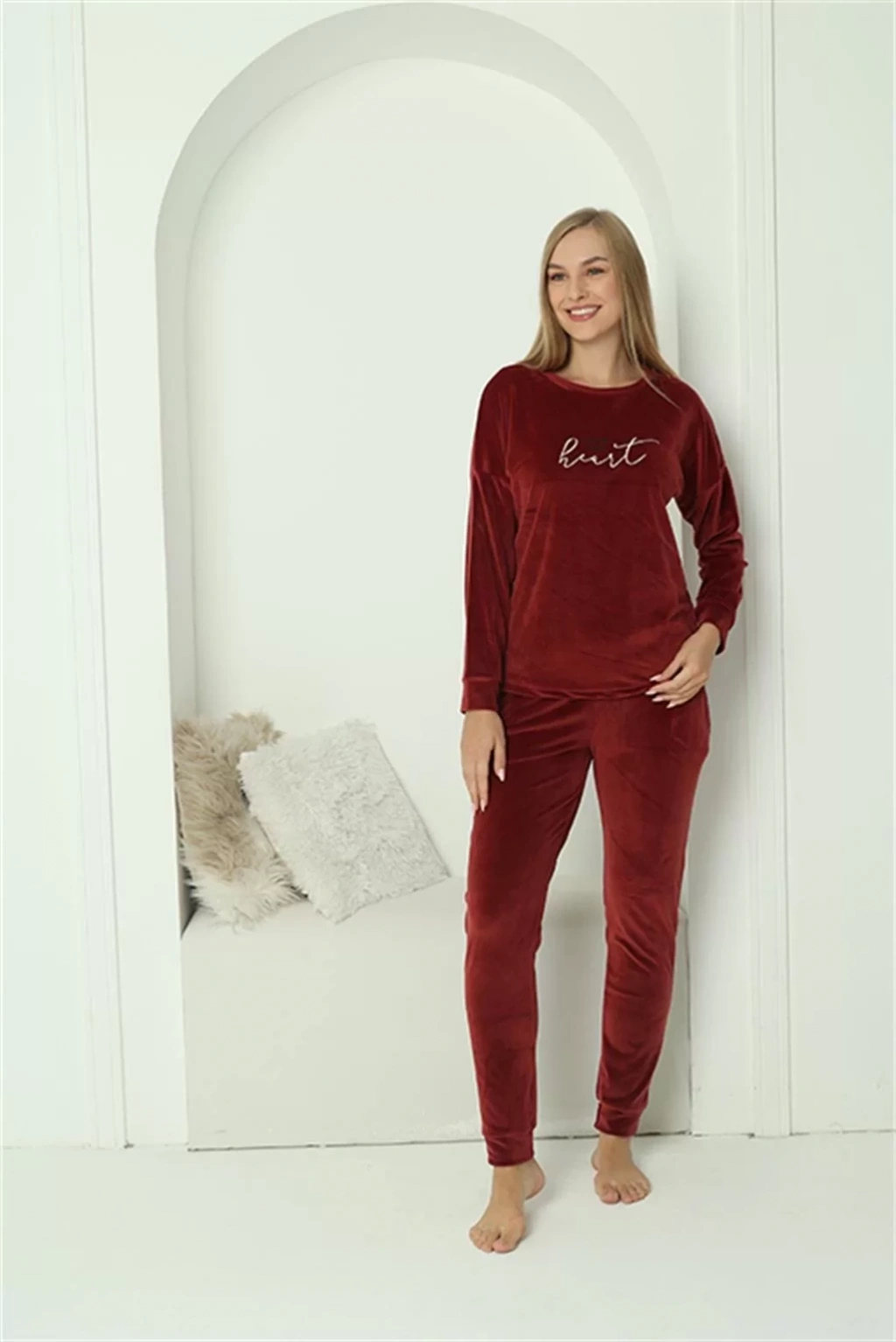 Şıklık ve rahatlığı bir arada sunan Çamaşır Kenti Kadın Kadife Bordo Pijama Takımı, gecelerinize konfor getiriyor. Bu özel tasarım pijama takımı ile kendinizi şımartabilir, evinizde geçirdiğiniz zamanı daha keyifli hale getirebilirsiniz.