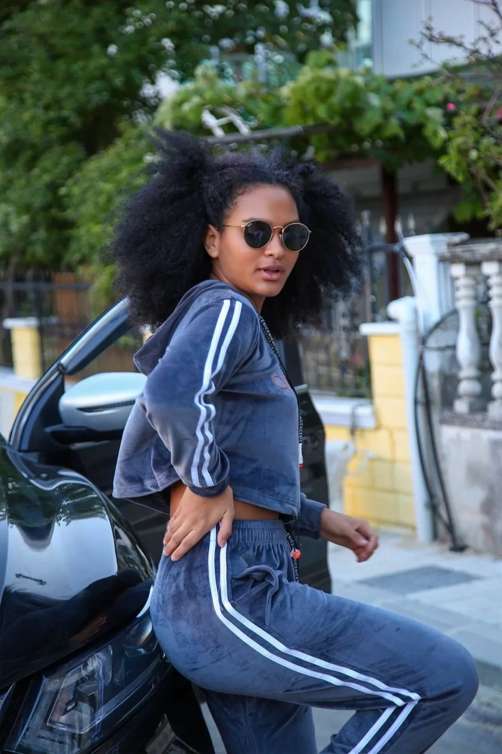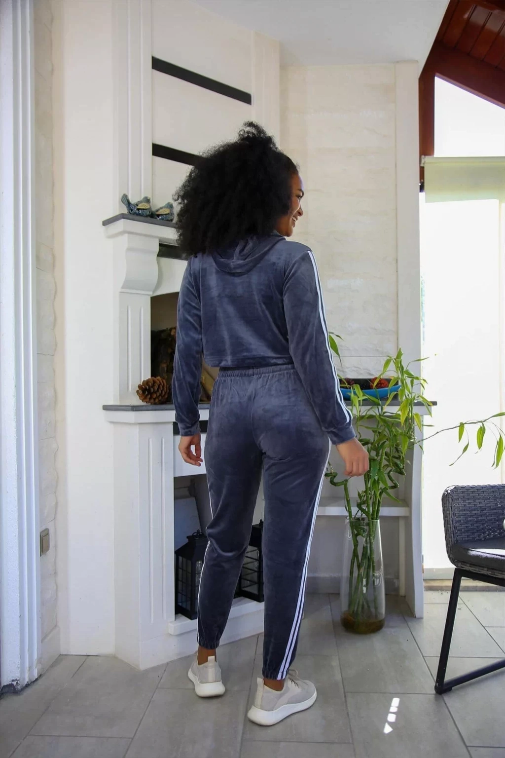 Çamaşır Kenti marka kadın kadife kapşonlu eşofman takımı, hem şık hem de rahat bir seçenektir. Bu takım, spor yaparken ya da günlük hayatta kullanabileceğiniz şıklıkta tasarlanmıştır.