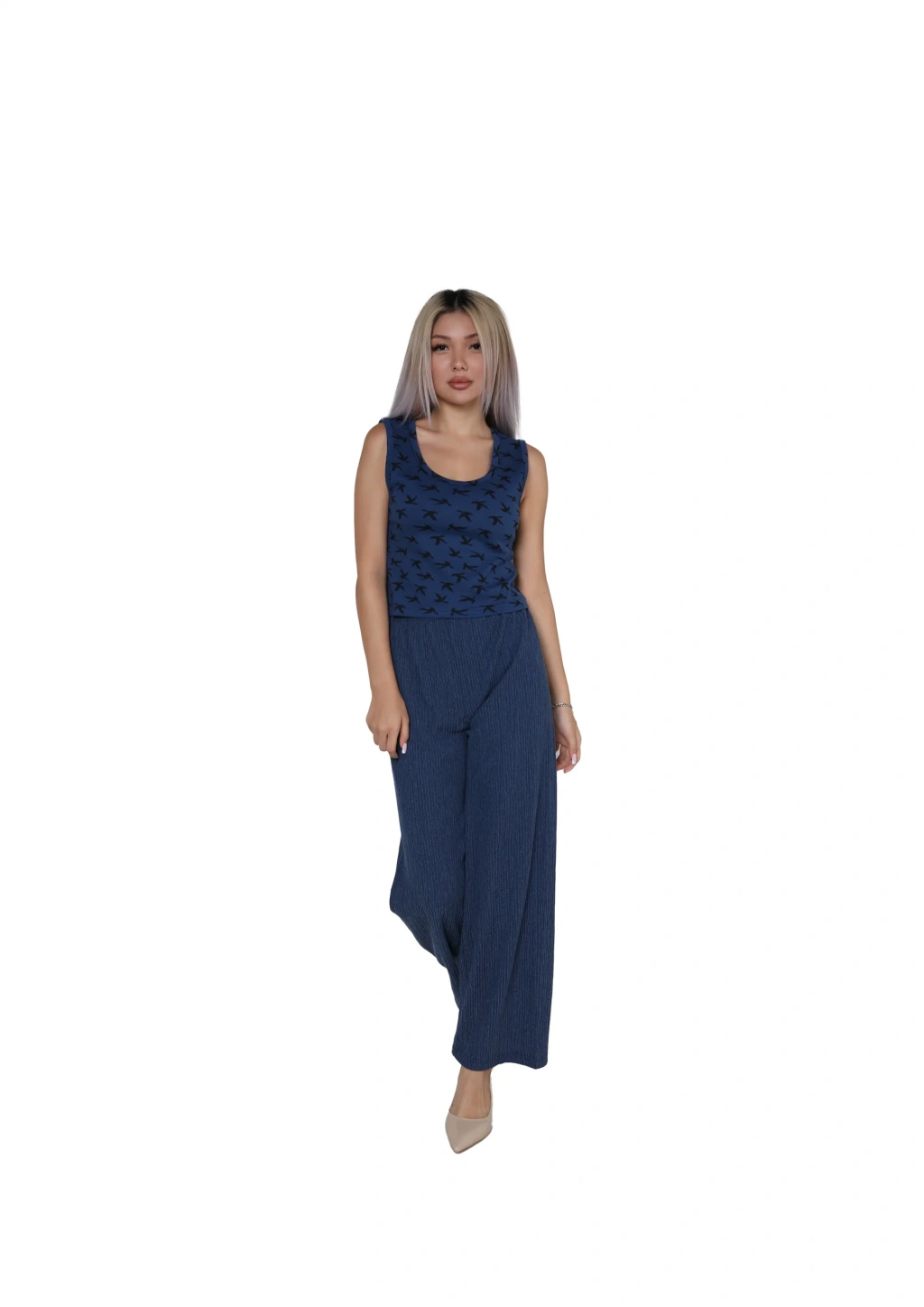 Bu harika takım ile her ortamda dikkatleri üzerinize çekmeye hazır olun. Çamaşır Kenti kalitesi ve şıklığı ile Kadın Kalın Askılı Body Bol Paça Pantolon 2'li Takım Lacivert, şimdi sizi bekliyor!