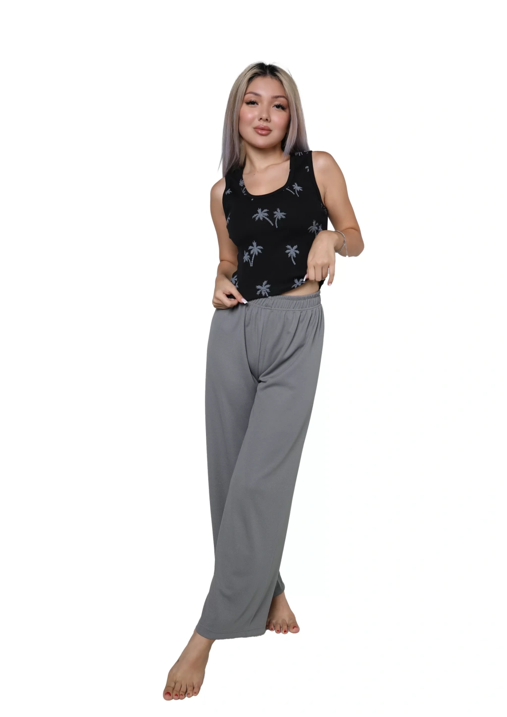 Bu harika takım ile her ortamda dikkatleri üzerinize çekmeye hazır olun. Çamaşır Kenti kalitesi ve şıklığı ile Kadın Kalın Askılı Body Bol Paça Pantolon 2'li Takım Siyah, şimdi sizi bekliyor!