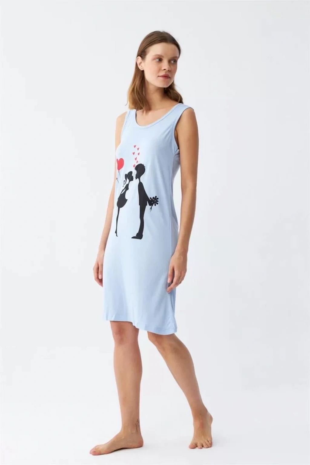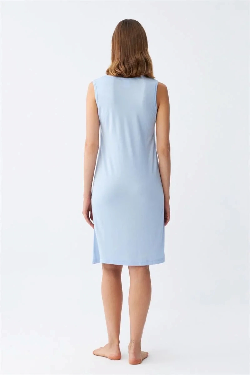 Çamaşır Kenti'nin şıklığı ve konforu bir arada sunan Kadın Kalın Askılı Penye Diz Üstü Mavi Gecelik, rahatınızı ve şıklığınızı ön planda tutar.