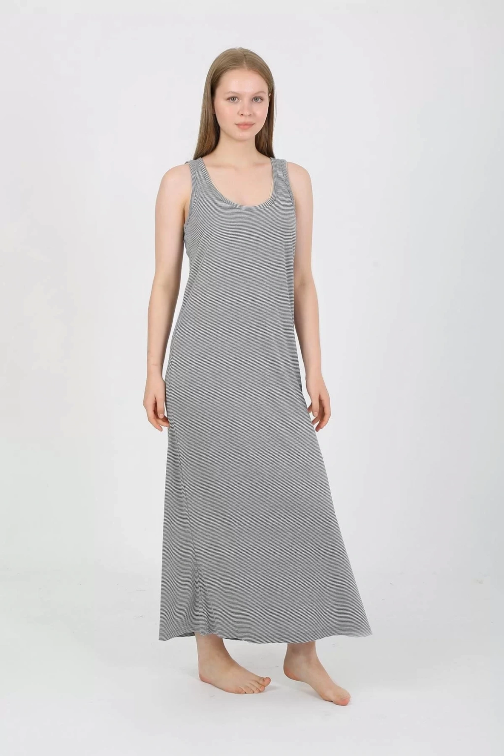 Çamaşır Kenti Kalın Askılı Yırtmaçlı Uzun Gri Gecelik ile hem güzel hem de rahat hissedin!